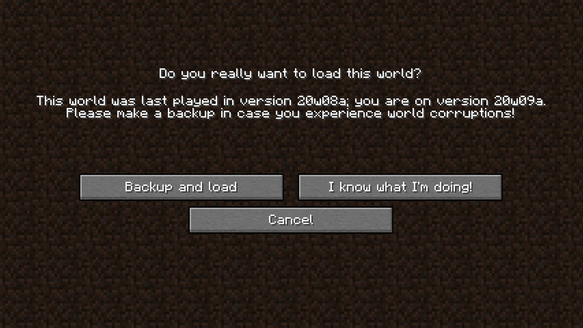 When loading a previous save file after updating to a new version of the game, a typo appears on the screen which encourages a player to make a backup.