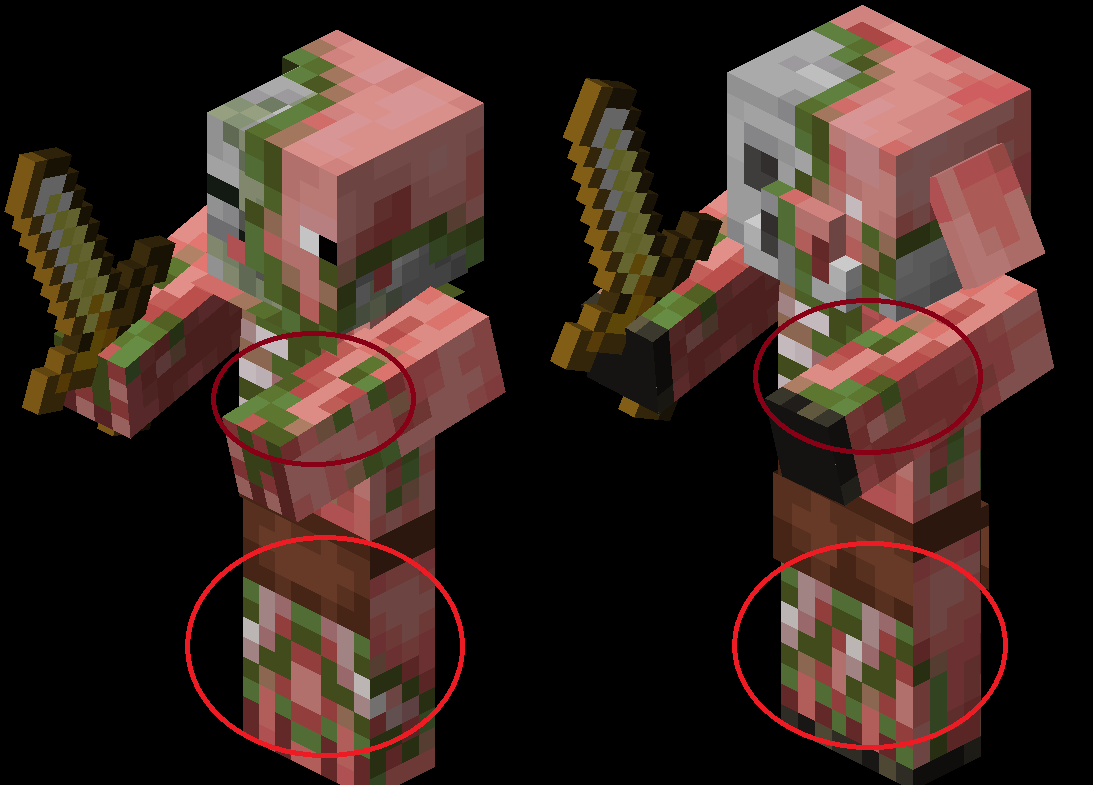 Comparing the new texture to the old Pigman texture, it looks like the left leg/arm texture is not mirrored like it used to be, resulting in two right legs/two identical members.