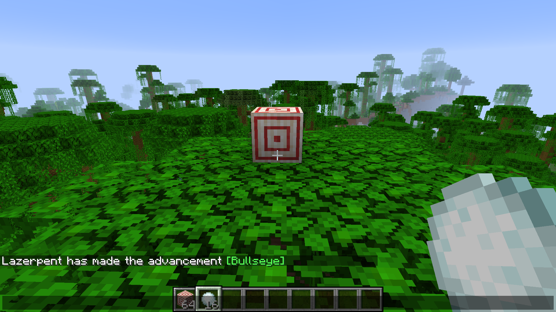 The new advancement, Bullseye, has the description Hit the bullseye of a Target block with an arrow, however it can be triggered using snowballs. Was also able to trigger with eggs and tridents.