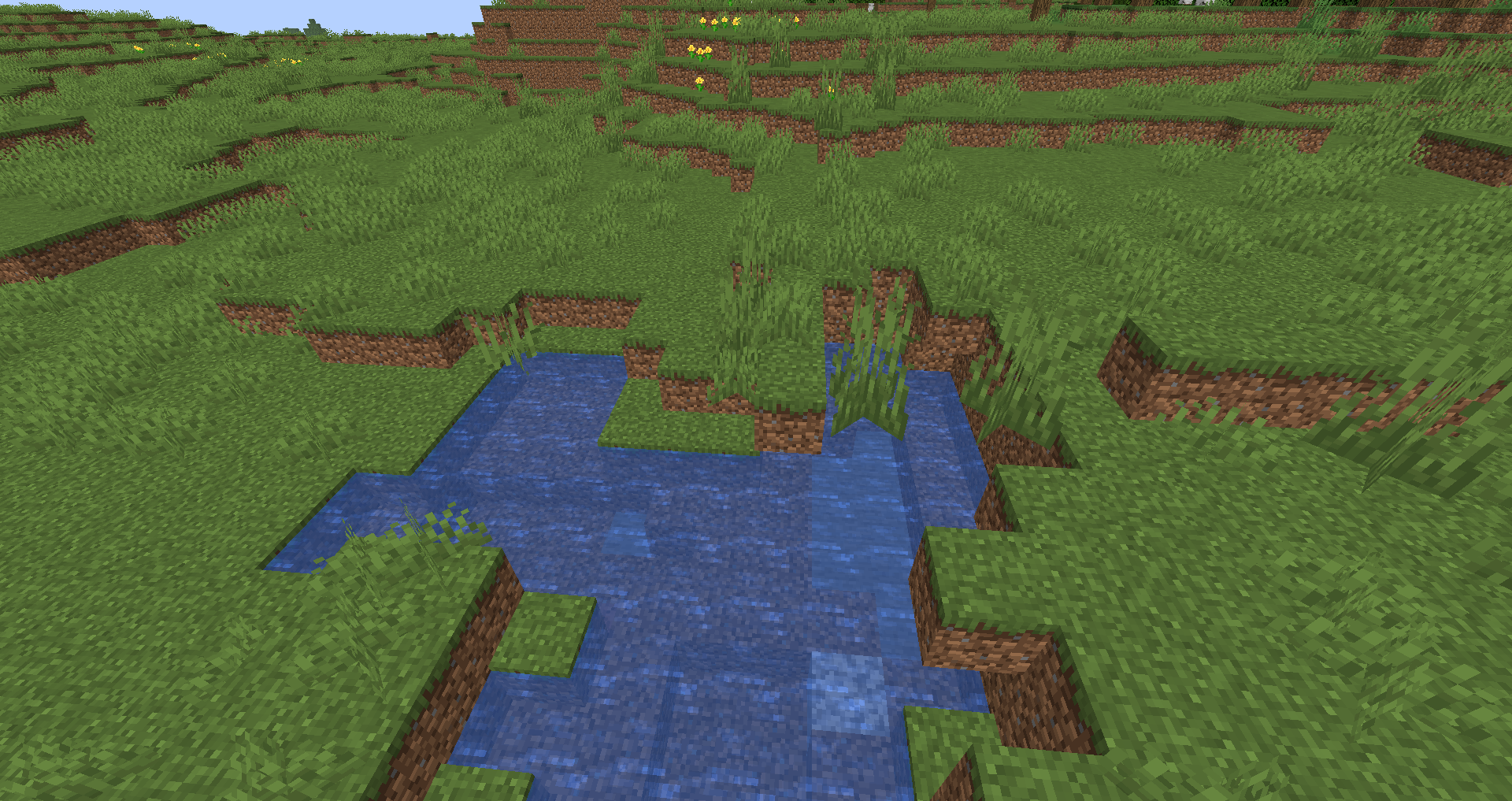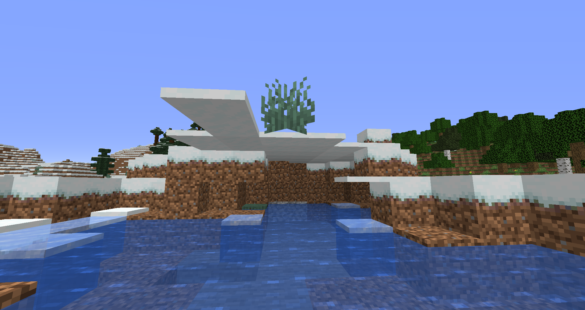 Snow, grass and trees float over lakes and lava pits. I tried it multiple times it works in every world. Also I didn't find lakes like these in minecraft 1.15.2 so I think it is a bug.