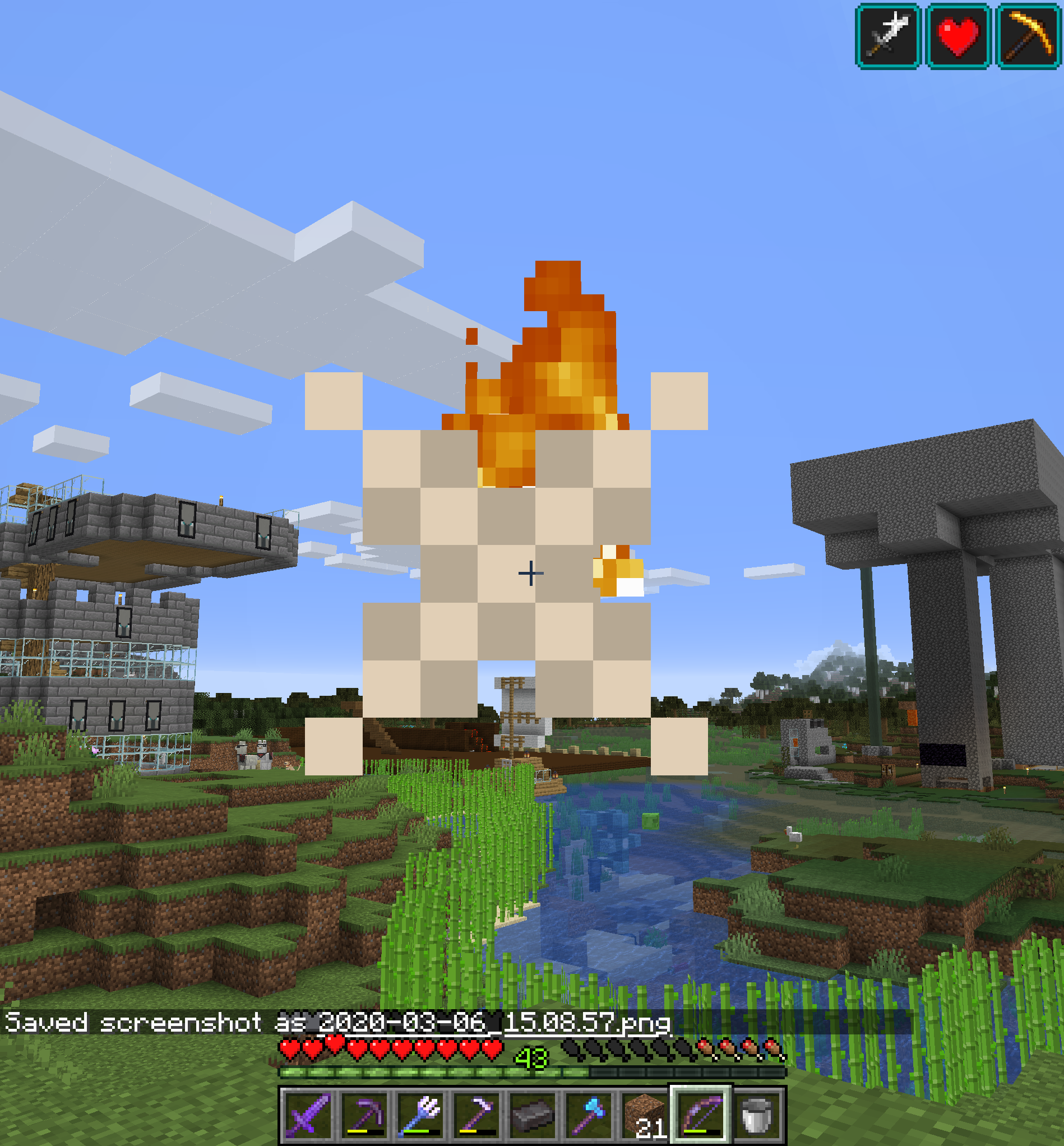 This is less of a bug, but a bow with the flame enchantment should show a flaming arrow when charging, if you add this, make it a small flame so it isn't annoying, make an option to disable it, and that's about it.