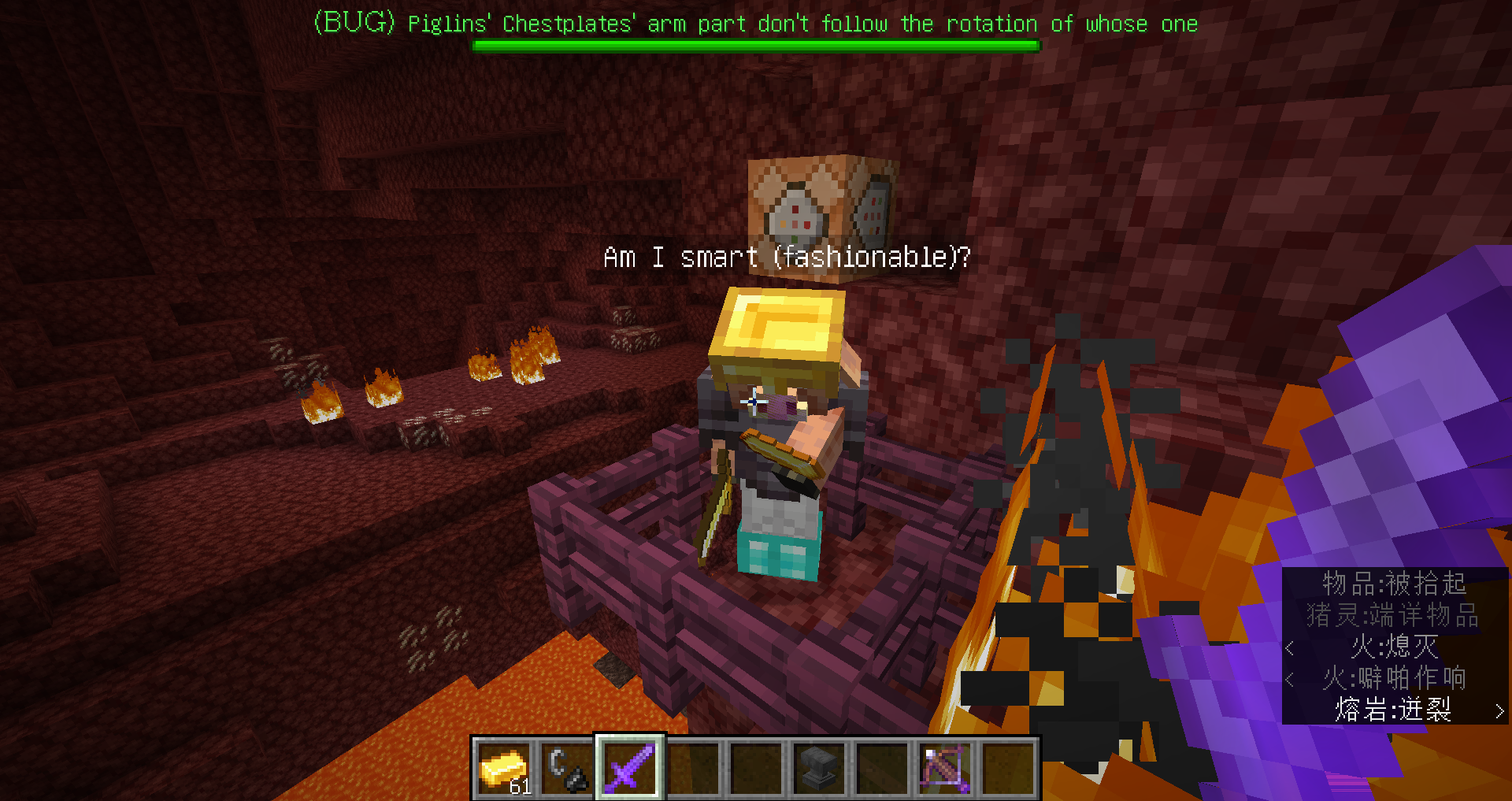 Give Piglins a golden item, let em hold it, then U can see what goes wrong.