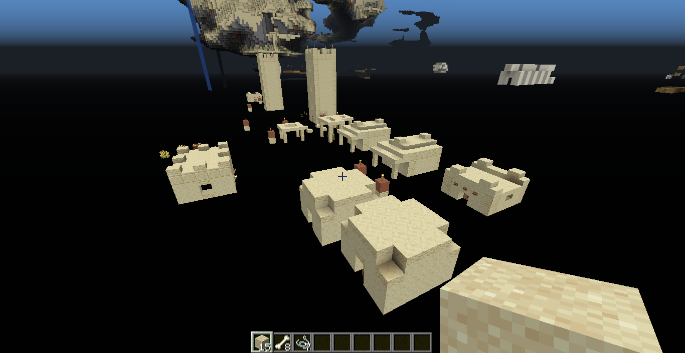 Villages are half spawning in the void around the Islands buffet world- specifically, the top half of villages, although some buildings in the village may spawn on the landmasses as well