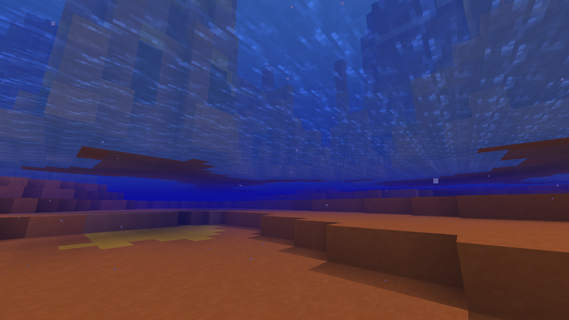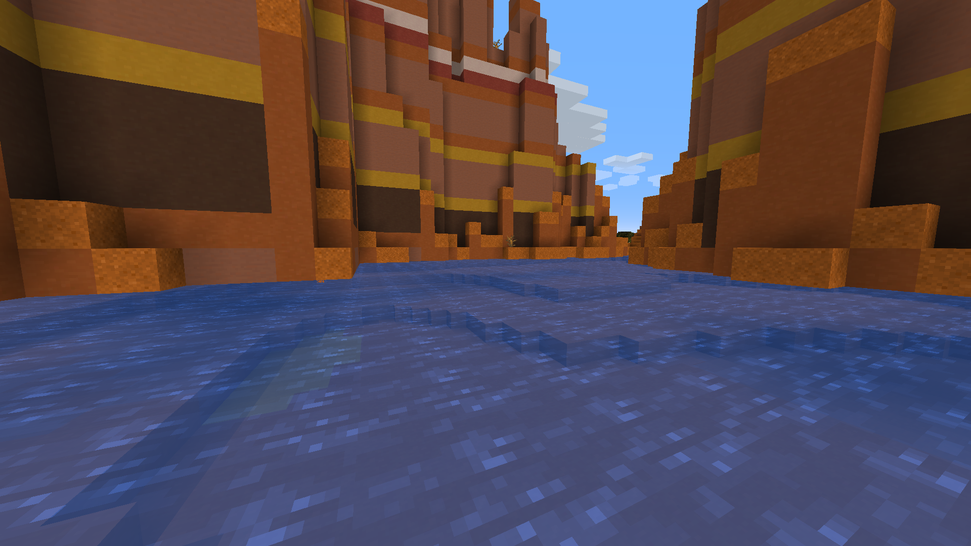 I was exploring through a new badlands biome I came across and then noticed that it was all floating above the water, not connected to the ground. This was also a bug for several much older versions of the game.