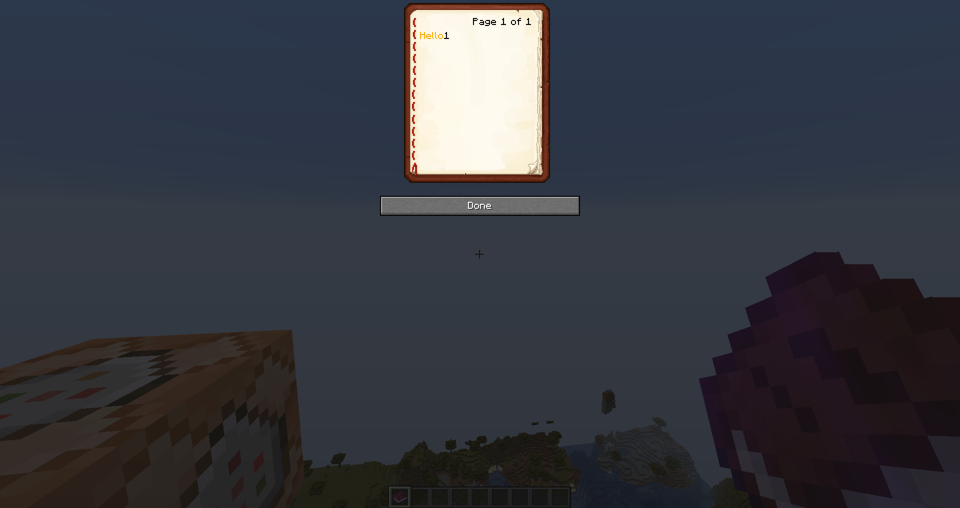 As you can see; both players are now able to see the proper formatting inside the written book; the word "Hello" in gold followed by a 1.