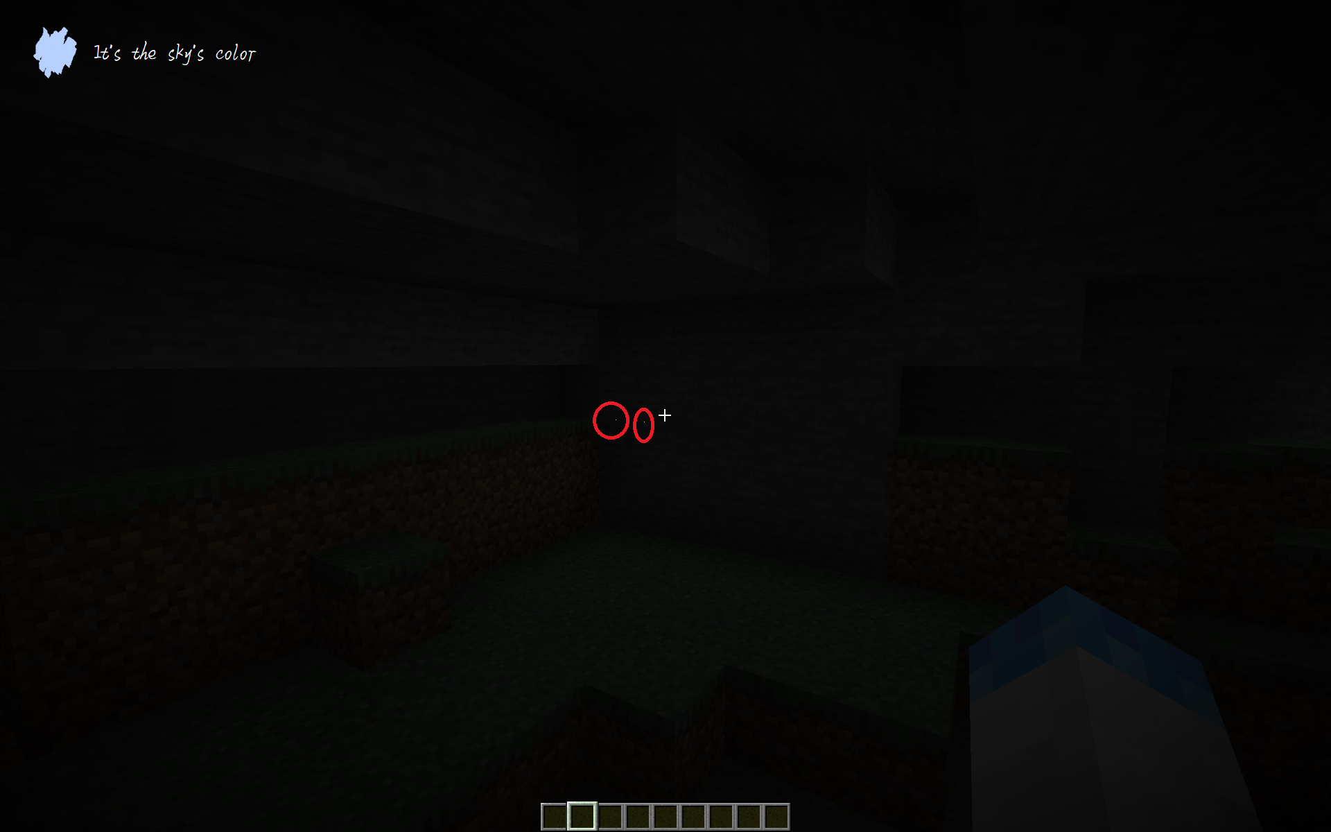 I don't know if I saw the same thing or not, but yeah, in a dark cave, bright pixels. Not blinking, per se, that is, if I stay still there is no change in the view, but if I move or turn, occasionally a pixel or two flashes. That phenomena can be exactly MC-1794 (or one of the myriad of technical reasons that make up the same/similar effect). (EDIT: after adding a little bit of light to see the blocks, the bright pixels are exactly at block edges, so yeah, what I see is definitely a case of MC-1794.)