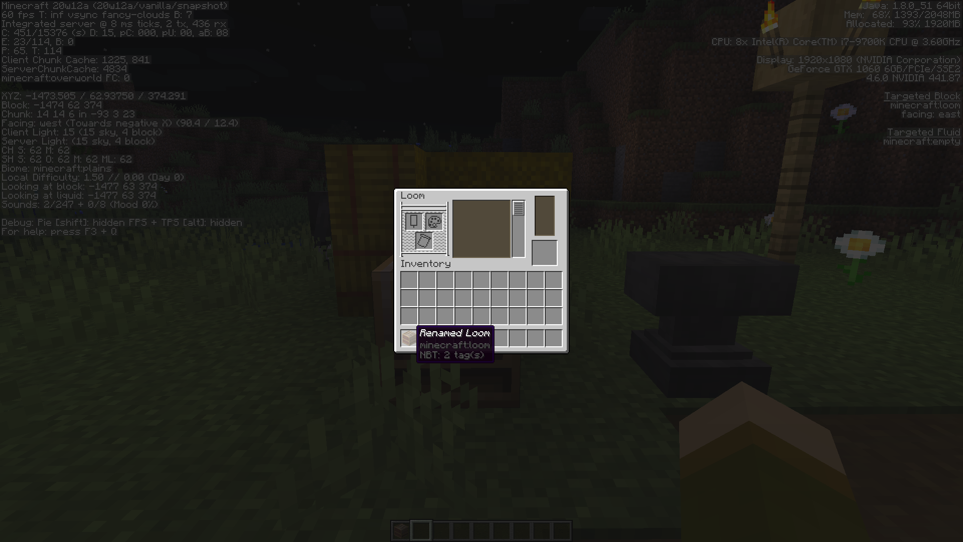 when the loom is renamed in the anvil, it does not change the text to the new name, like other blocks with a gui. It stays as "Loom"