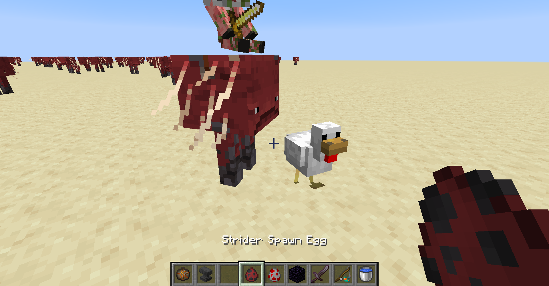 Occasionally a baby zombified piglin chicken jockey can spawn riding a strider. I wasn't able to capture it spawning because the baby zombified piglin immediately dismounts the chicken when it spawns, leaving the chicken to wander off.