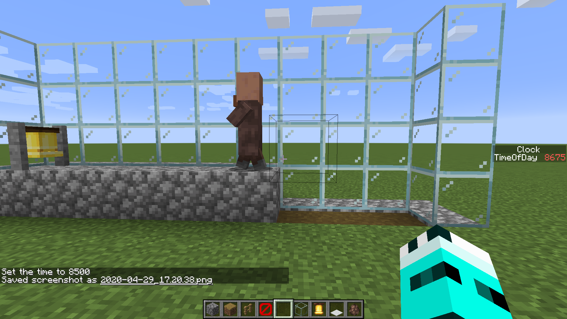 Unfortunately, I don't have programs to make a video. Fortunately, you can find a village with this meeting point, set the time to 9000 and reproduce this.