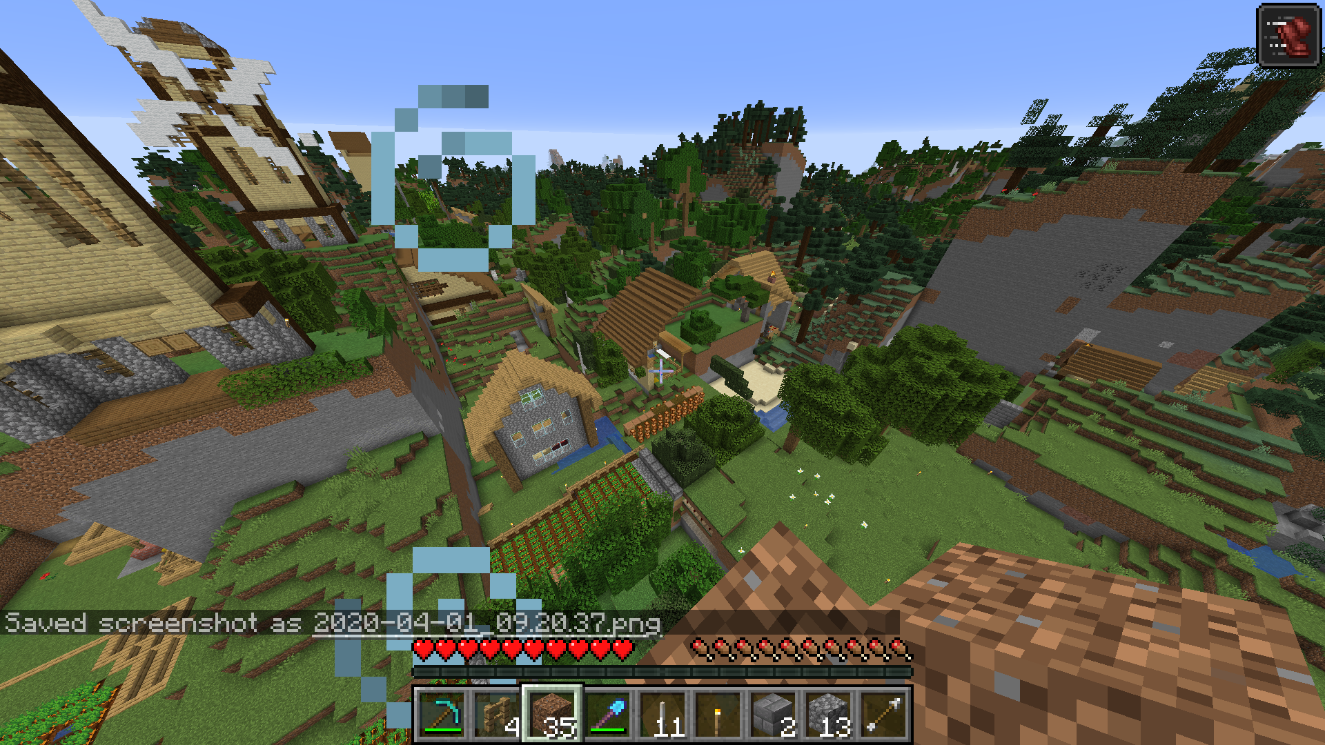 Overnight I was AFK in my world (as I had done many times before) and this morning I woke to find cliffs and other landscape elements had generated haphazardly in the middle of my base (including my ENTIRE inventory, which is now completely gone). I did not experience any crashes, had been playing on the updated version (1.15.2) for a while, and had plenty of computer resources to handle the load (FYI, Windows 10, 16GB Ram, Core i7, a few hundred GB free on disk). Parts of built structures have been moved around (see screenshots–one of my castle towers was moved, the back half of the windmill is now in front of it, etc.)