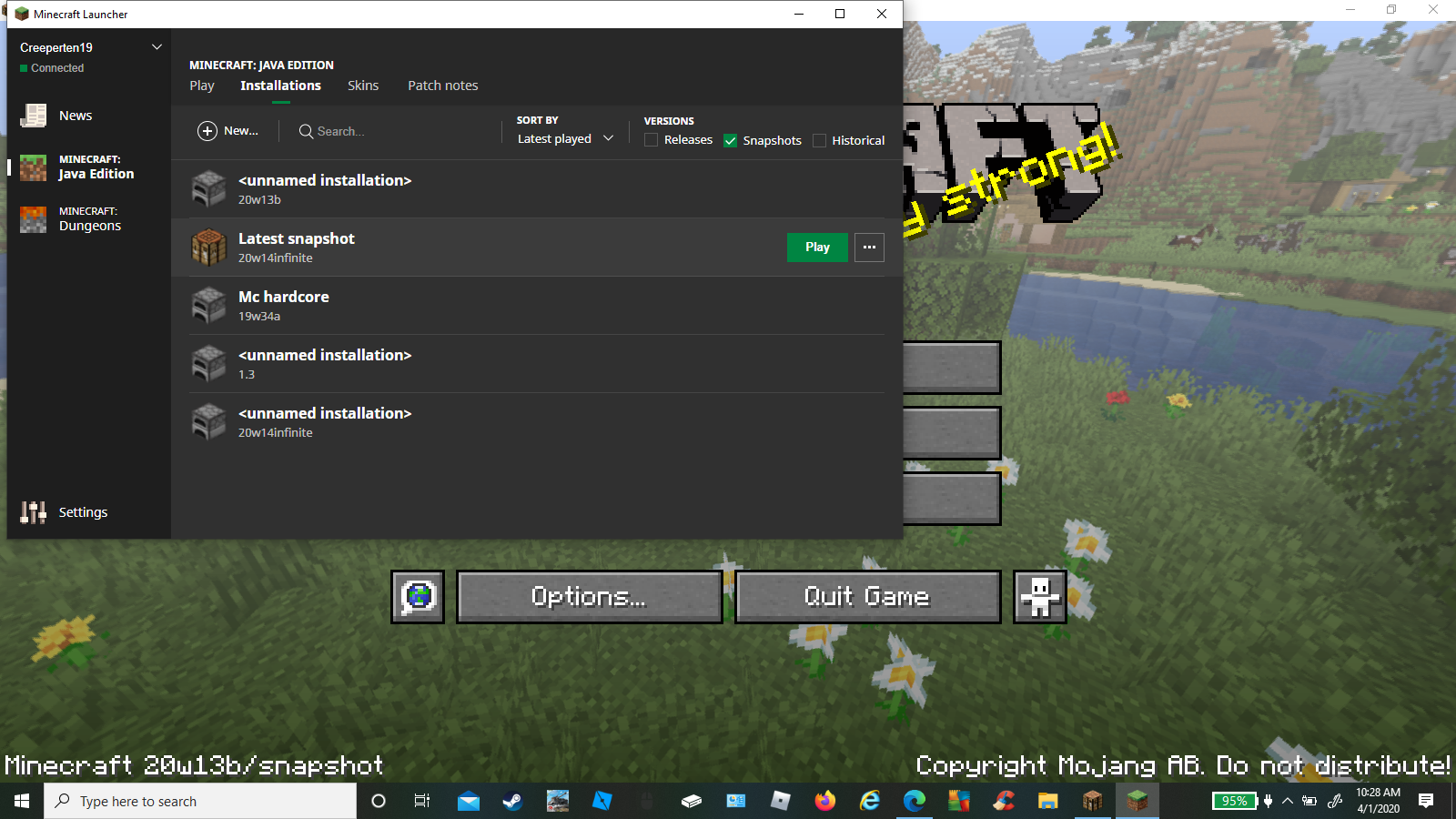 I Opend Minecraft and i found a new snapshot called 20w14Infinte so i loaded it up and when i look in my single player worlds they where all gone, but when I wen't to 20w13b all my worlds where there I'm confused and when i look in patch notes there where none for snapshot 20w14infinteย