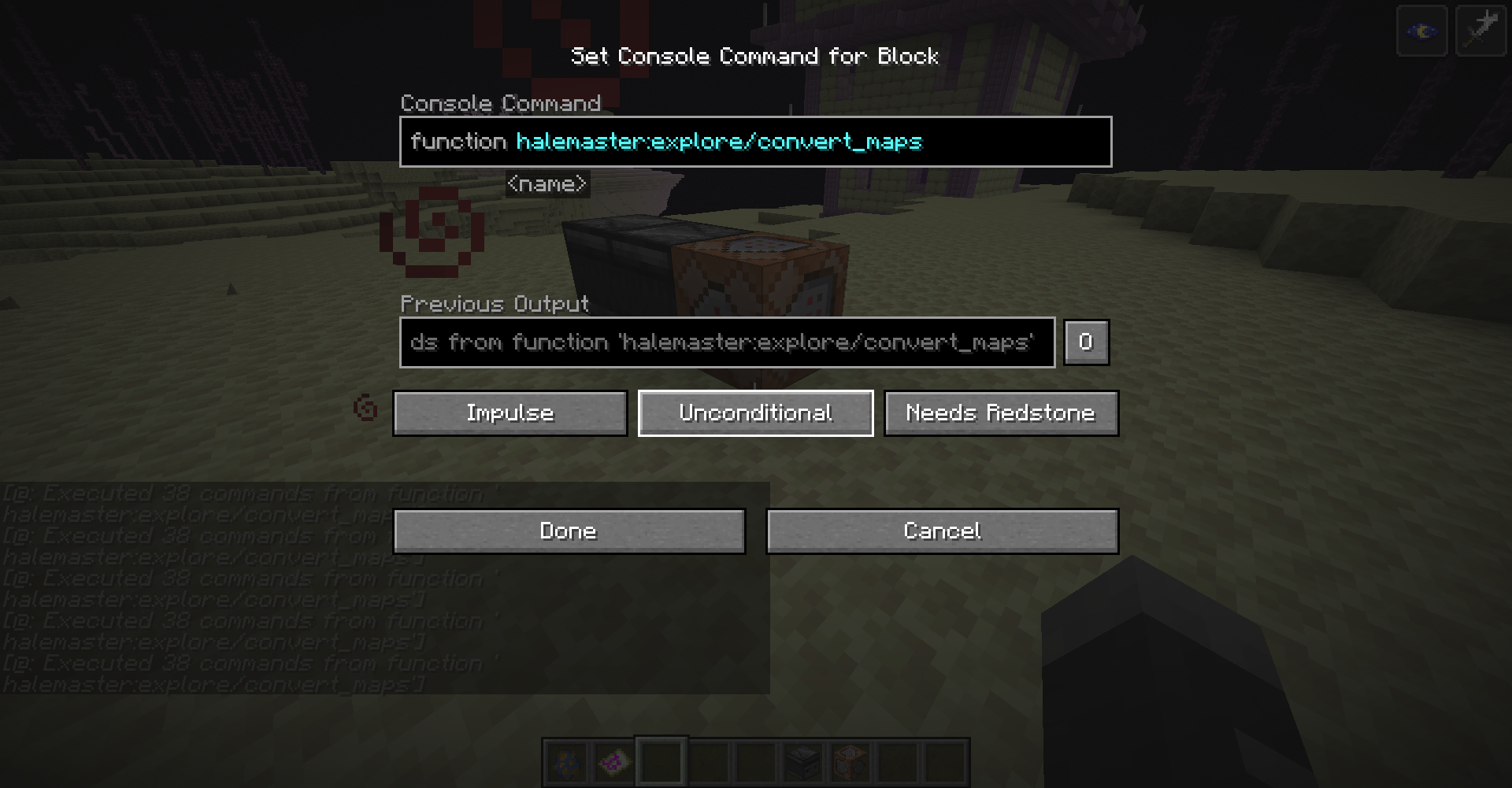 When scheduling the function, I instead sometimes get a weird map that can spawn more maps when right clicked. I believe this is because the map was not generated within 1 tick.
