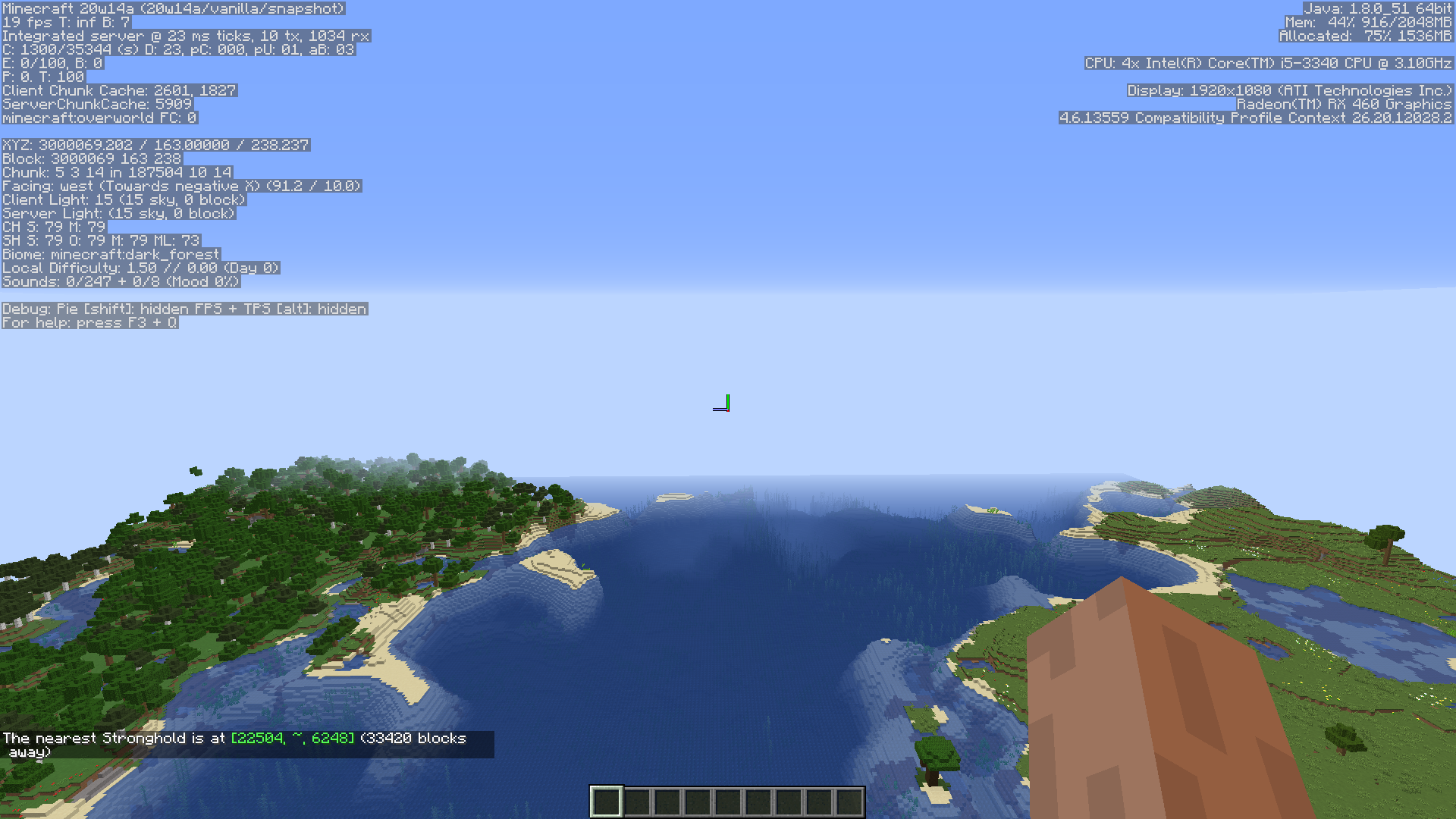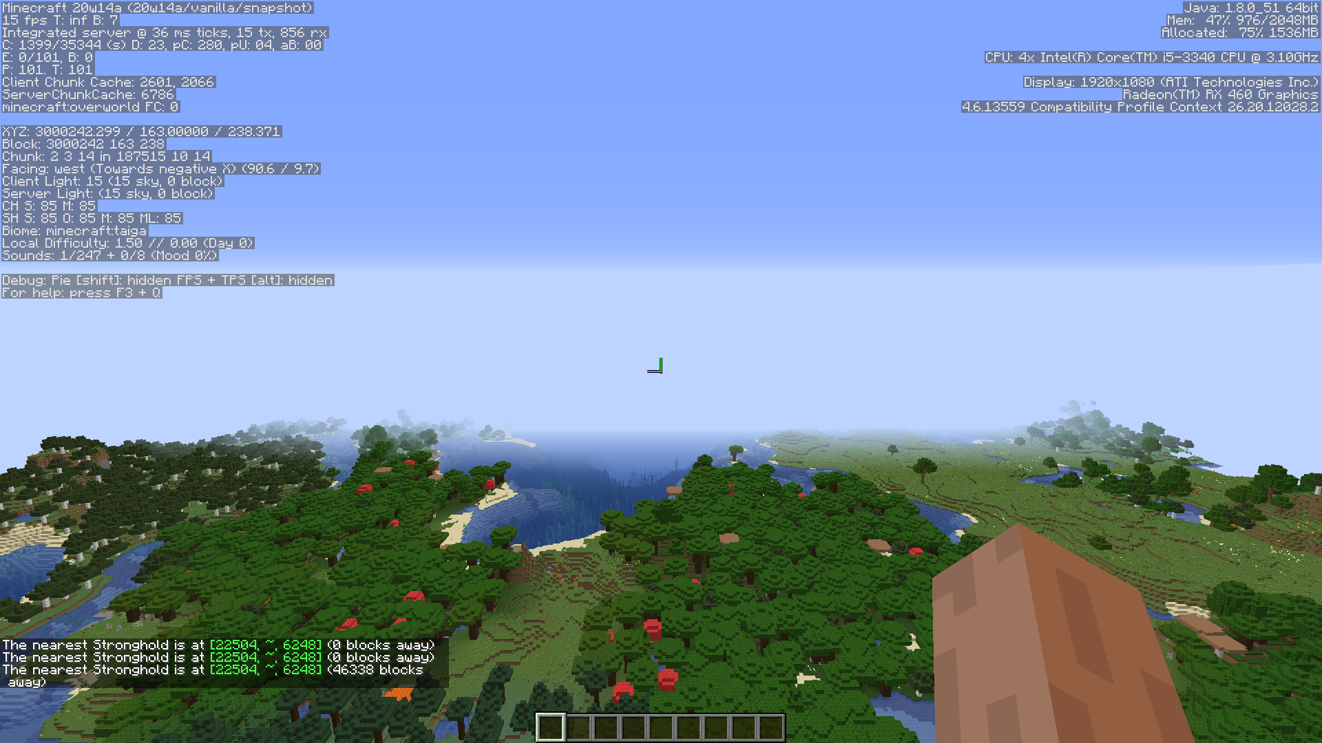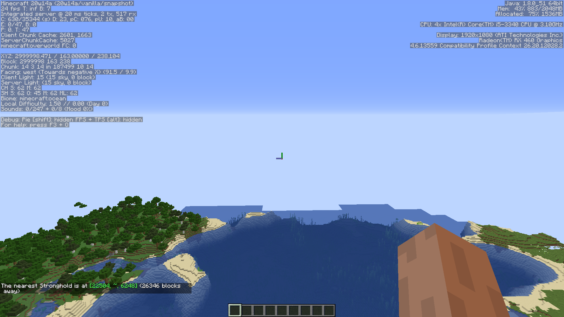 → ✔ It should be about maximally 37000 blocks away, the counting works correctlyTeleport 46340 blocks away from the nearest stronghold