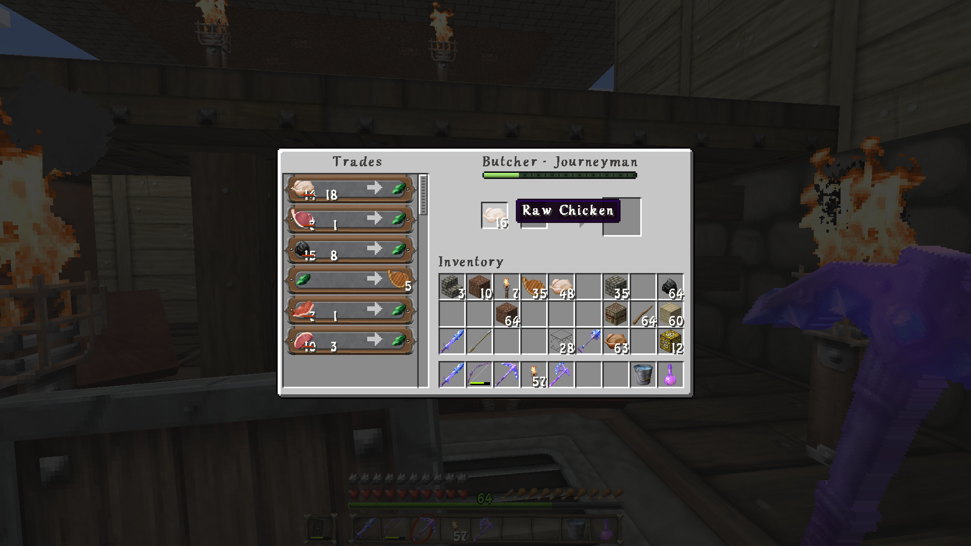Raw Chicken trades with the butcher increase instead of reducing. I was at 8, then 18, then 25 it increases when i trade him. I didn't hit him or anything