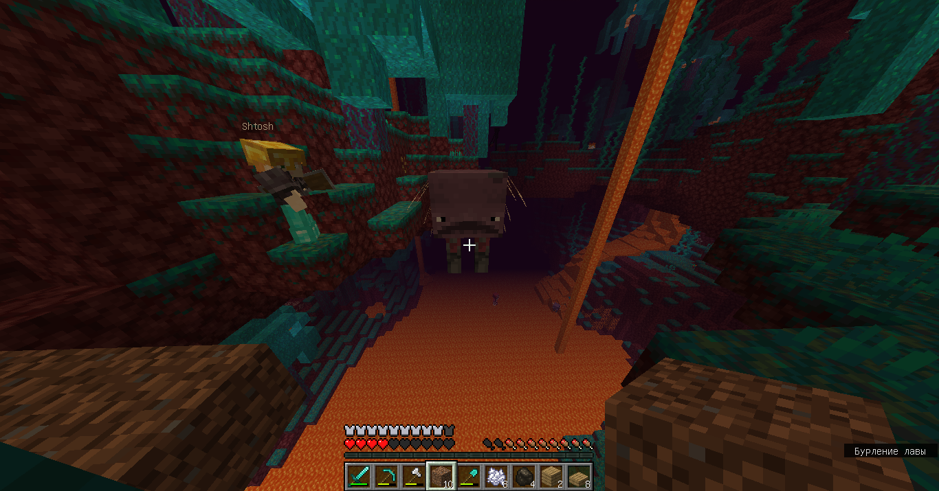 What actually happened was : my friend Shtosh met a strider in hell, he wanted to dip it into the lava - dump it into it, but the strider began to hang in the air (there were no invisible blocks)
