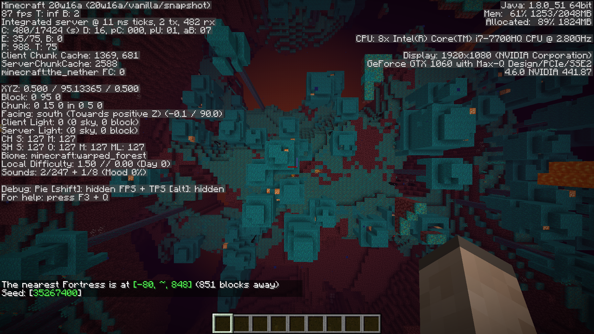2) create a world in both versions with cheats using the seed 35267400
