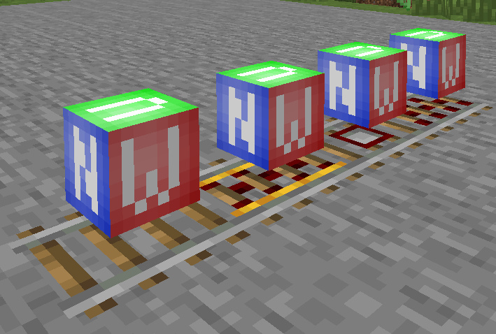 This affects resource packs that provide a custom model for different rail blocks. To visualize culling I've made a small helper indicator, where a letter disappears if block is culling in this direction.