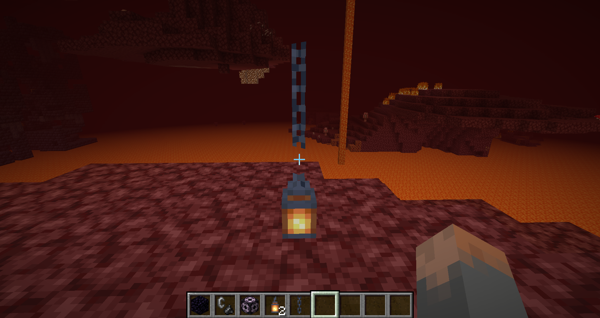 Placing a lantern on the ground and then placing a chain on top doesn't connect the chain to the lantern.