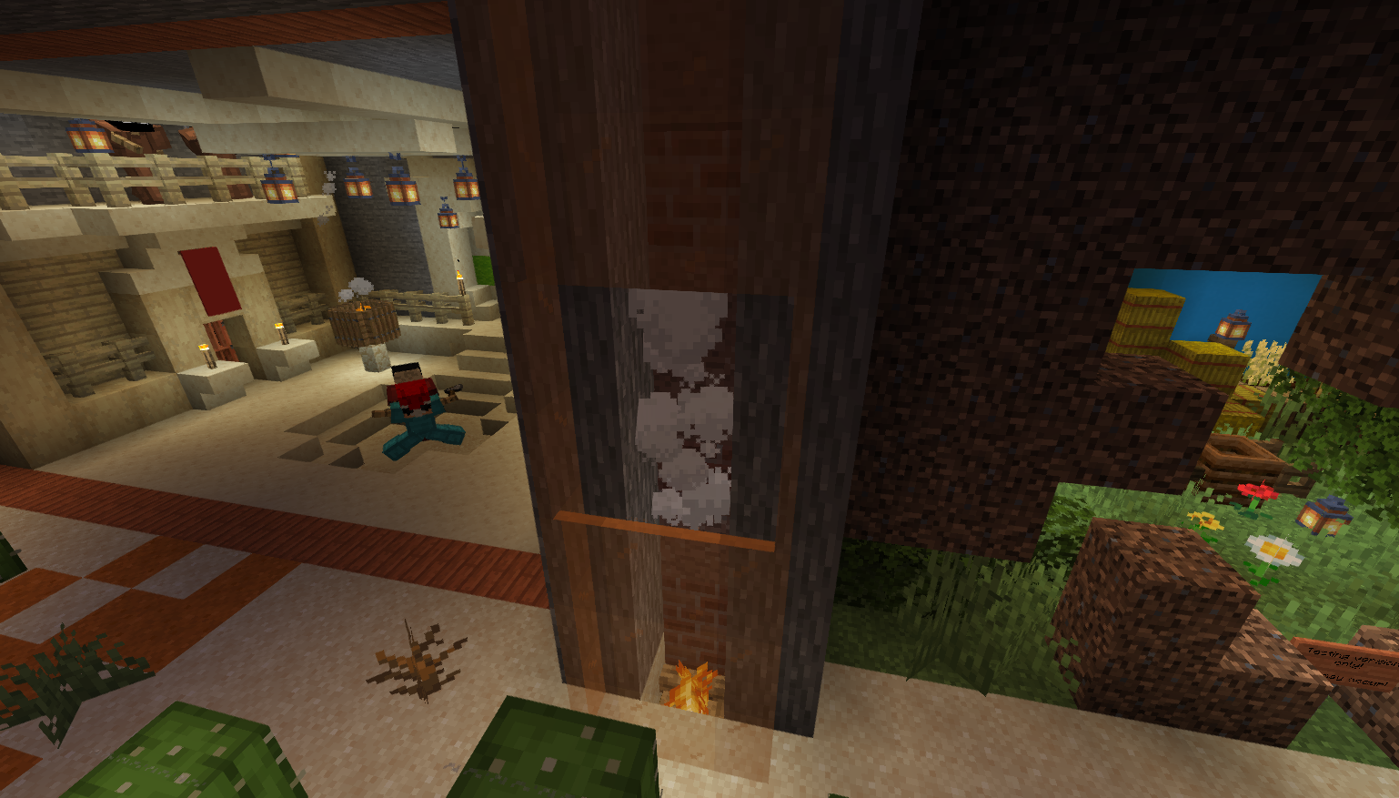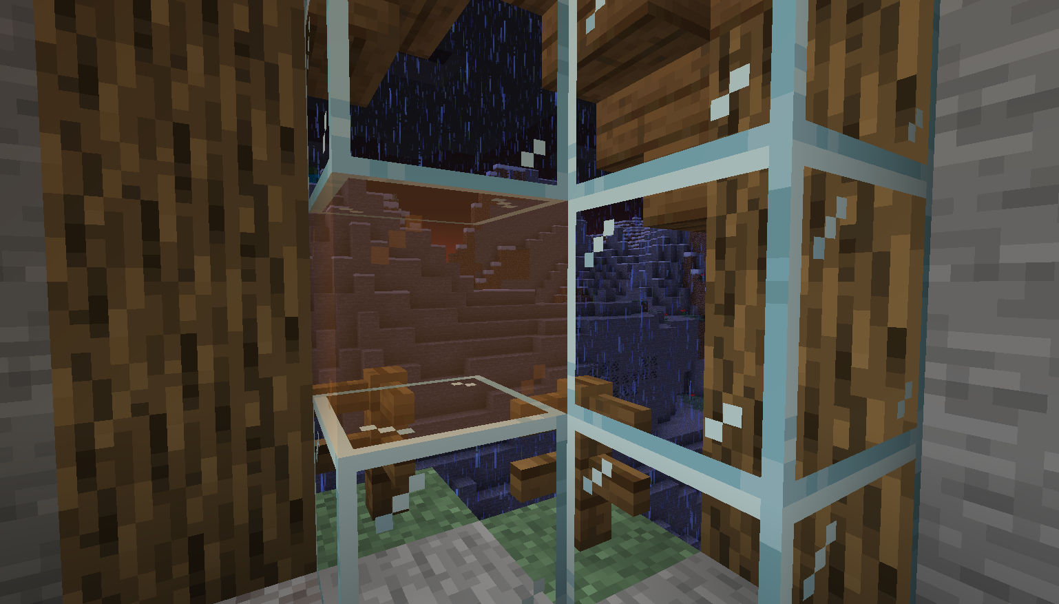 Particles and rain/snow are invisible behind a stained glass or glass pane.