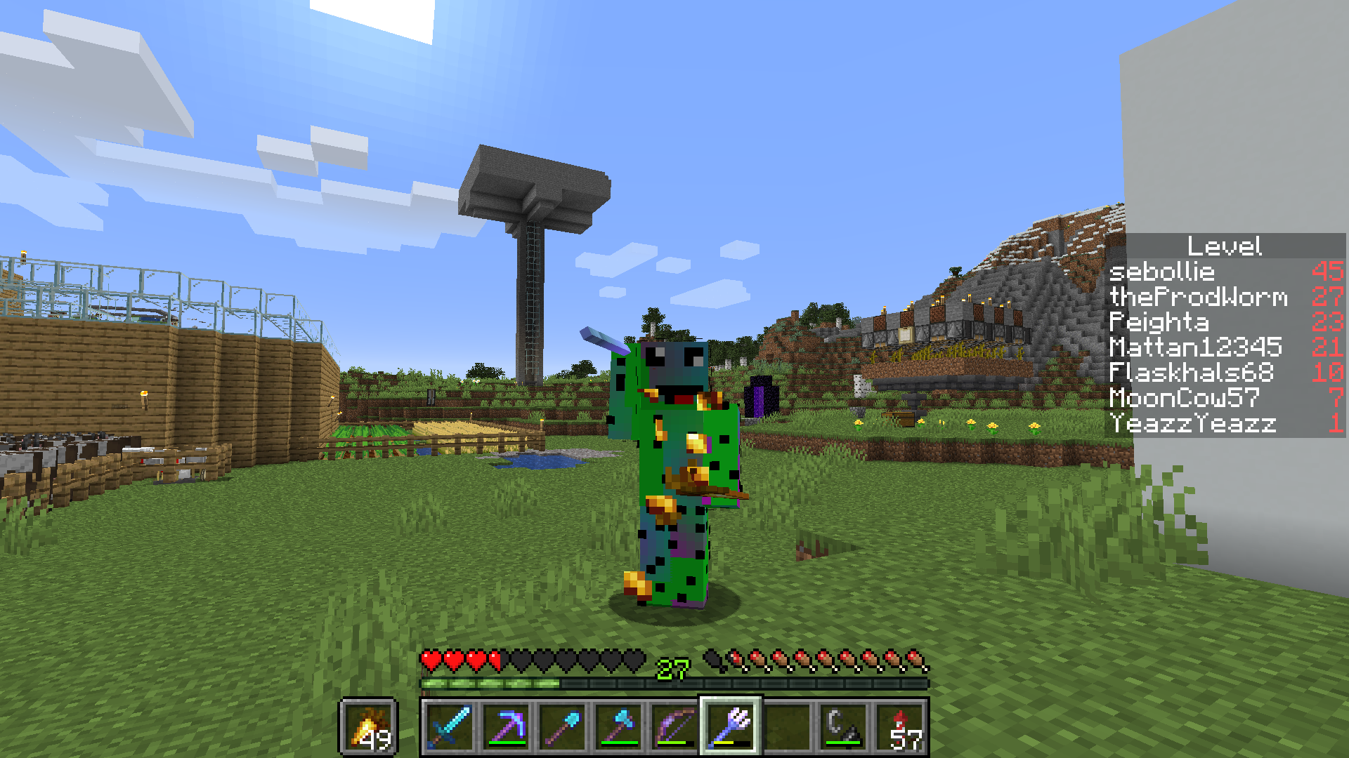 Holding a trident enchanted with riptide while eating a food item makes the player raise their trident hand, only holding the trident backwards, as shown in the attached image.