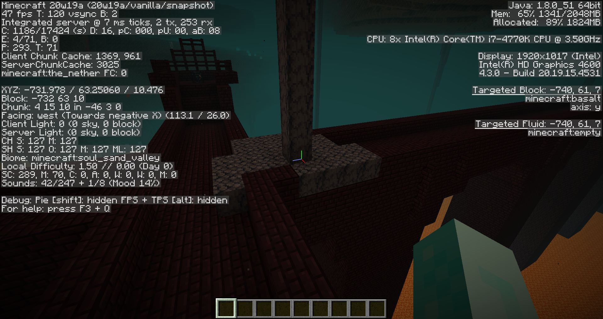 Still happening in 20w19a. This happened to me in 20w19a. Seed: -2240640425710137565 Teleport command: /execute in minecraft:the_nether run tp @s -732.81 60.00 11.99 112.25 8.08 Should I create a new bug report for this?