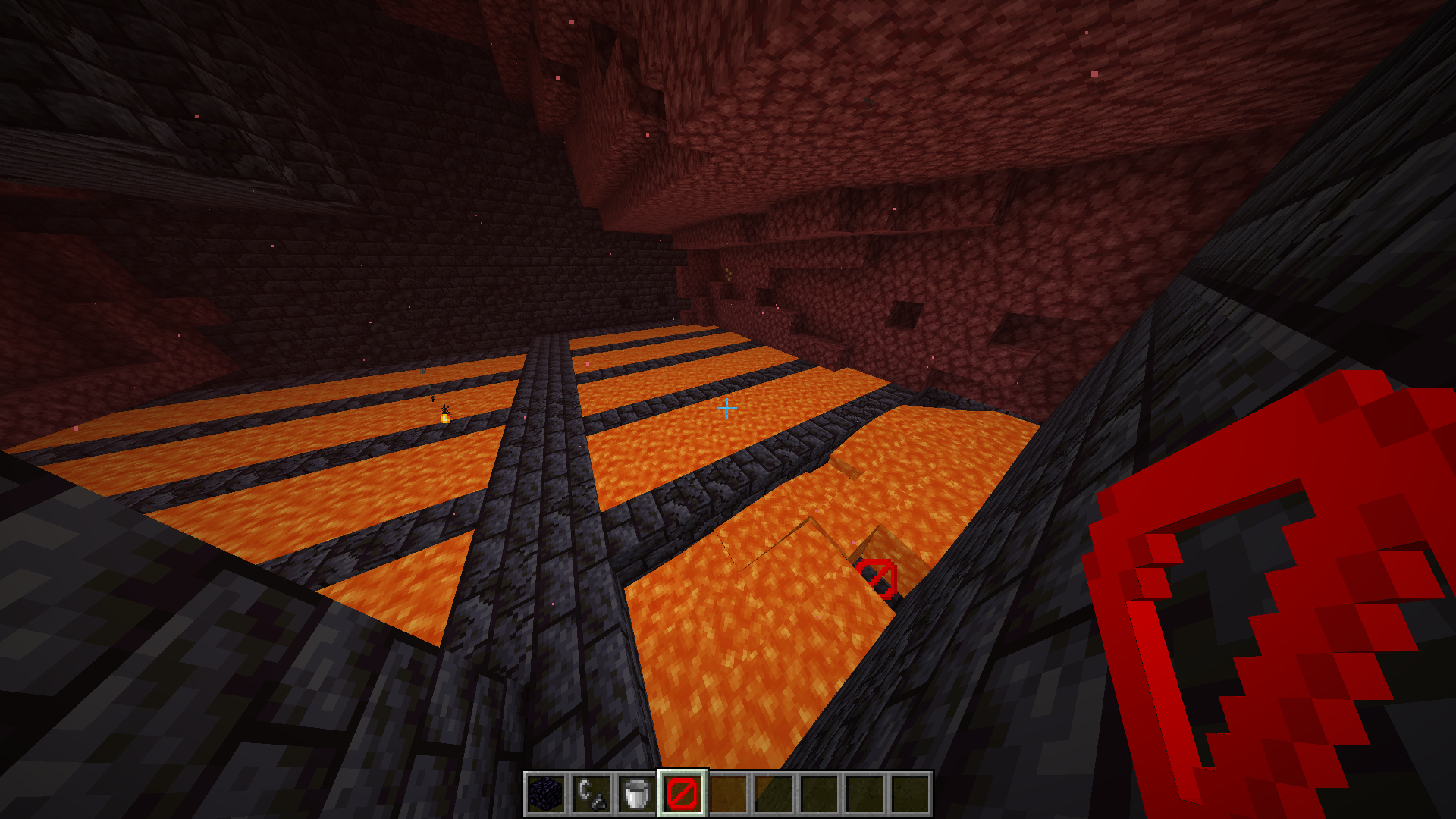 The barrier block can be found naturally generated in one of the lava pools in the bastion structure.