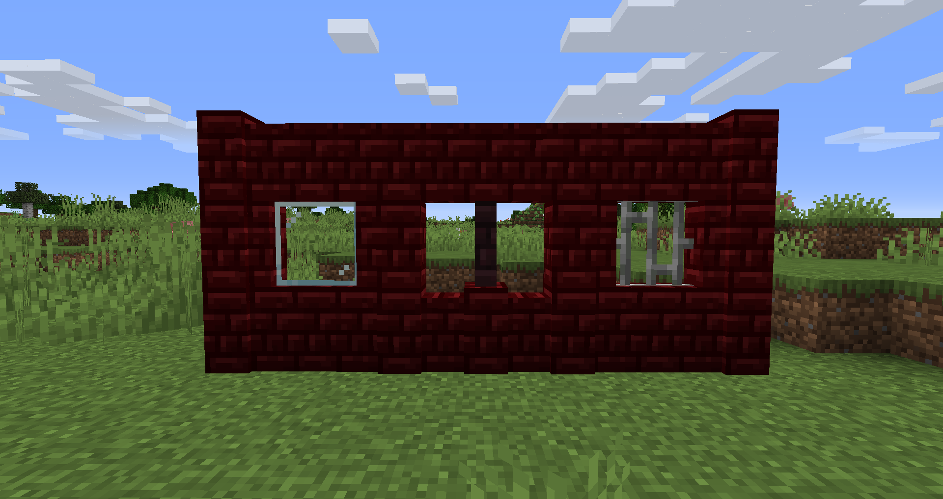 Fences do not connect to walls despite iron bars and glass panes connecting.
