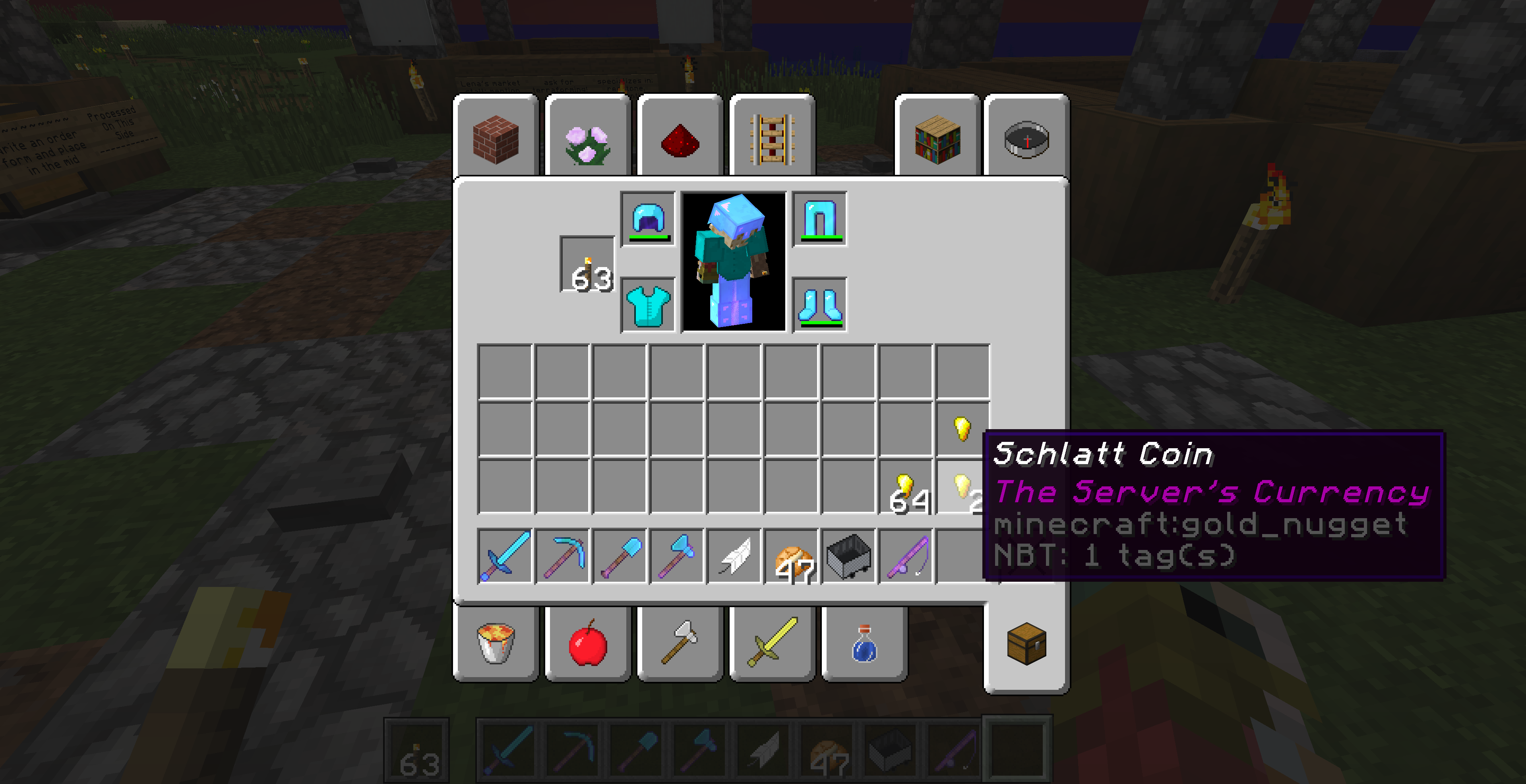 Now, use the following command to give yourself a Schlatt Coin: /give @s gold_nugget{display:{Name:"[{\"text\":\"Schlatt Coin\"}]",Lore:["[{\"text\":\"The Server's Currency\"}]}} 1