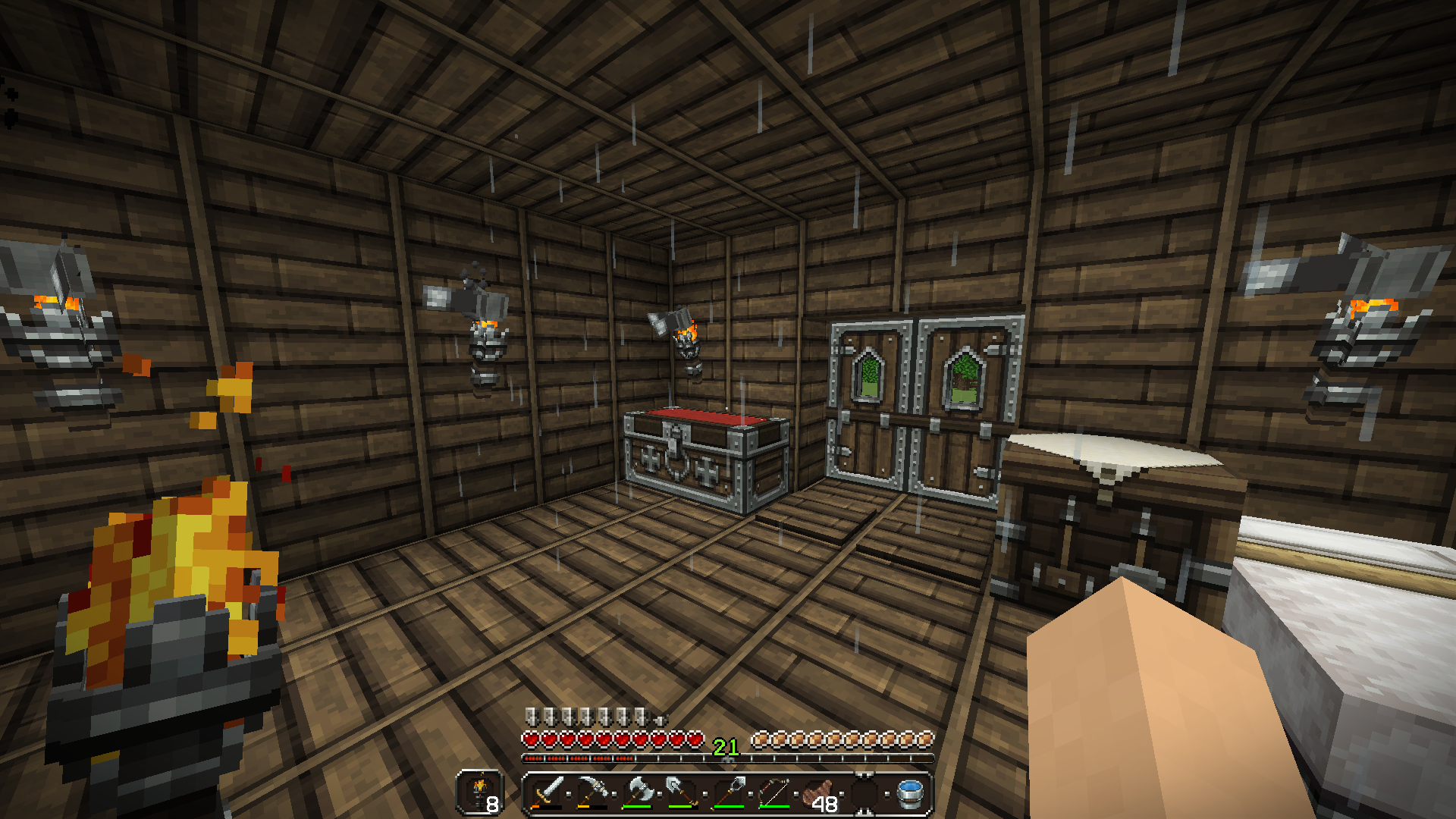 When mining at level 12 and when in shelter (wood house) i could hear the rain 50-60 blocks above and could also see the rain in certain areas as it glitched through the blocks