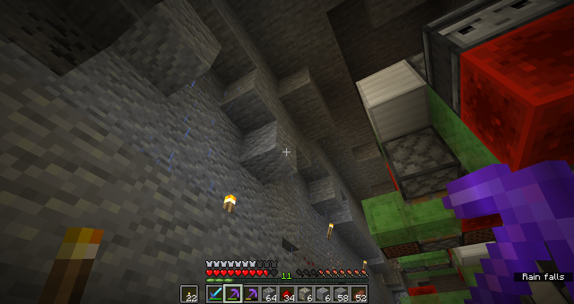 I was down at about Y=11 when it started raining on the surface and rain particles were appearing below ground