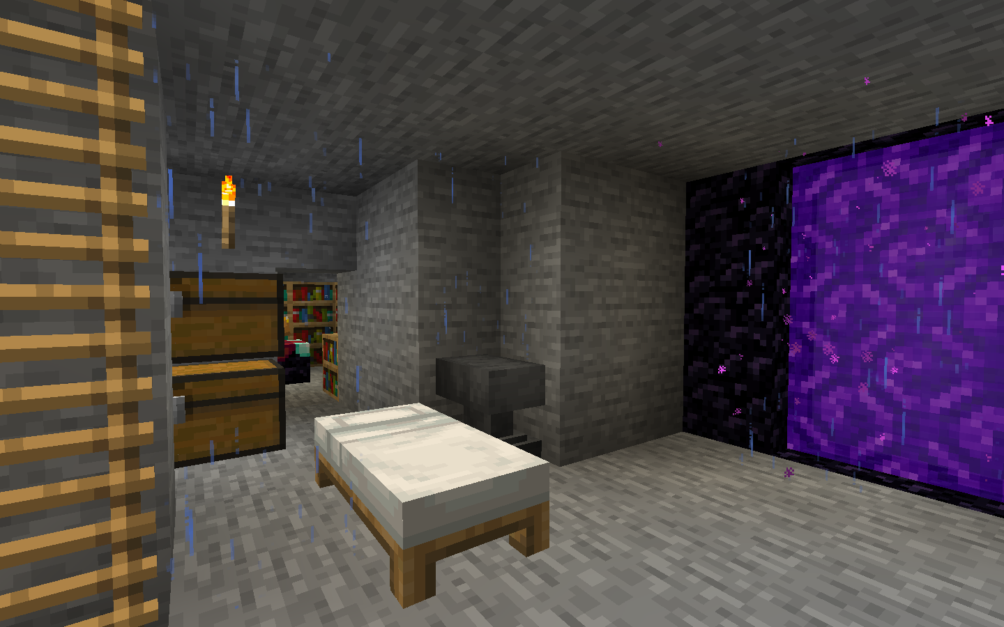 I had just came through my Nether Portal, and then when looking around I saw that rain went through my stone blocks and was going in my house. I turned off my texture pack but it wasn't that it still was going through the block.