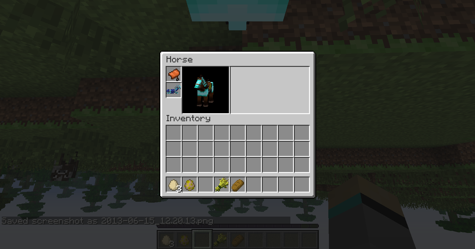 when you get on the horse and get to like you and then when you open the horses menu and you put on the diamond armor and then put on the saddle the back round show the sky or show whats behind you, but it upside down.