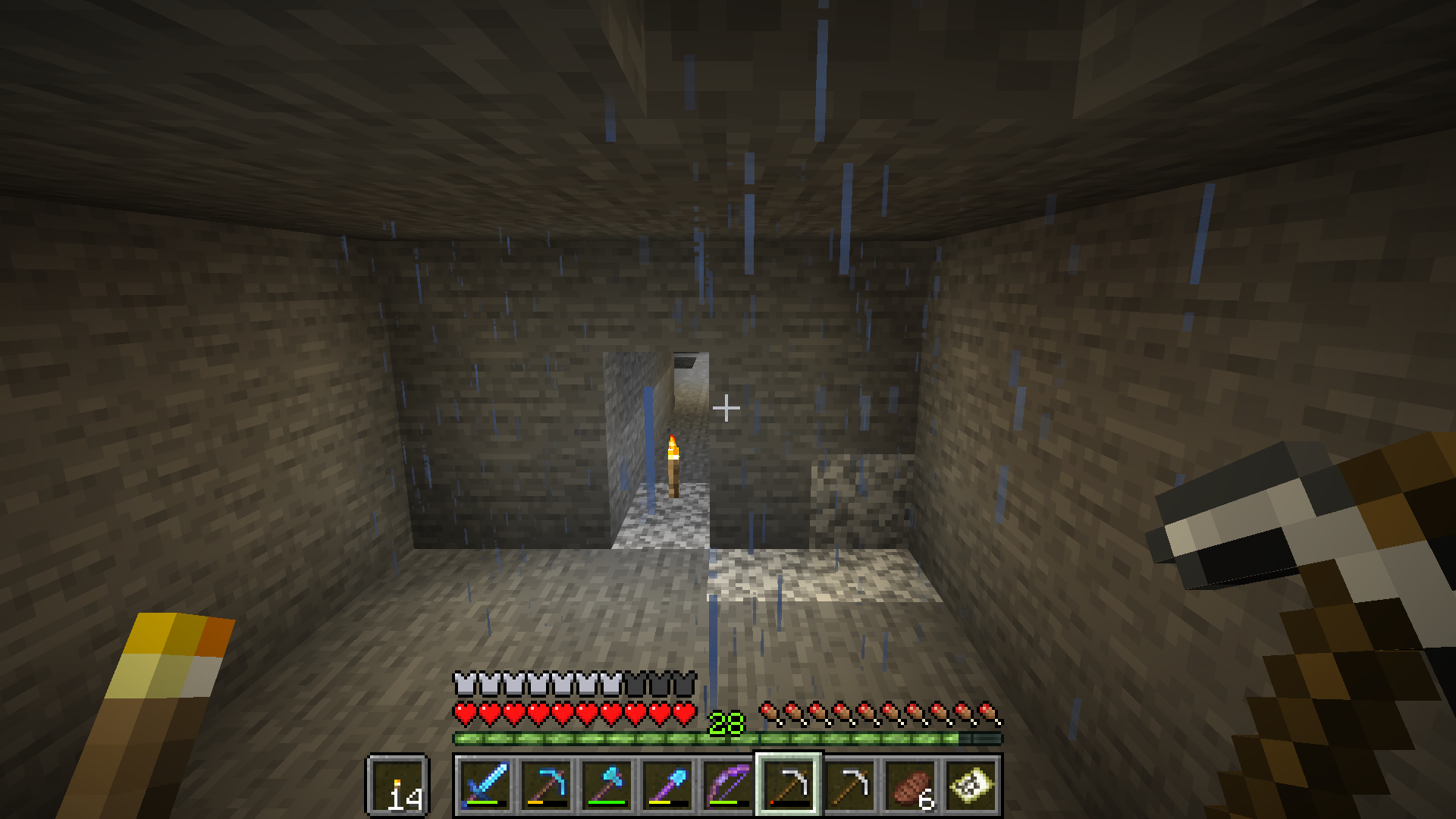Was mining underground when I heard rain, which confused me because rain isn't usually very audible at Y=12. Then, as I came across one of my tunnels, it was actually raining from the roof, from a few random blocks. I found these weird little rain patches all throughout my tunnels. There's some screenshots inclosed below. Probably the strangest bug in the snapshot so far lol.