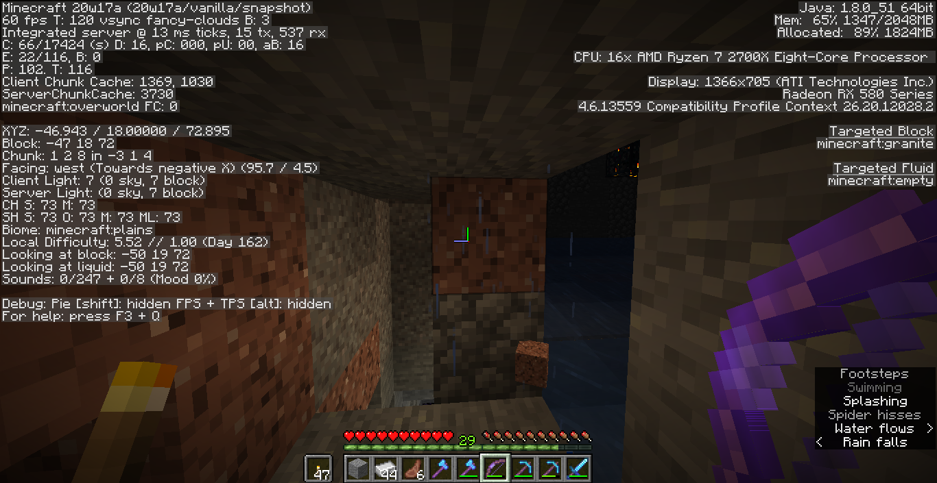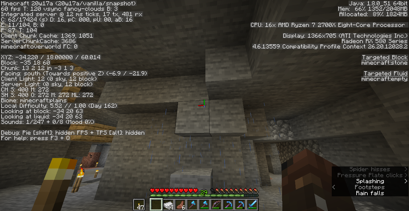 While in caves and it is raining, sometimes rain particles will be falling through the enclosed cave. Placing a block on the highest spot fixes the issue, but it occurring frequently throughout the cave system.