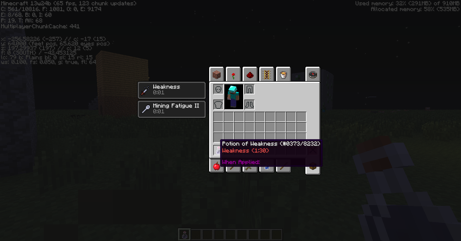 (btw, the Weakness and Mining Fatigue are there due to a System I made)