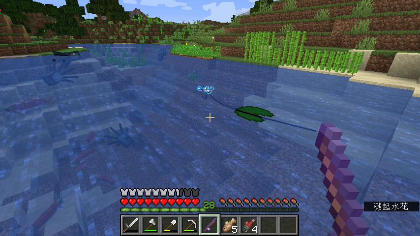 如图所示,钓鱼线始终显示在水下的部分,而不是一条黑线