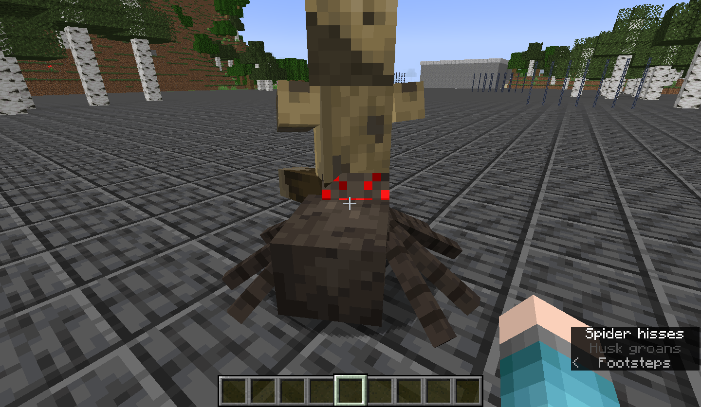 /summon minecraft:spider ~ ~ ~ {Passengers:[{id:"minecraft:husk"}]}Walk around the back of the spider and wait for it to eventually look in your direction.
