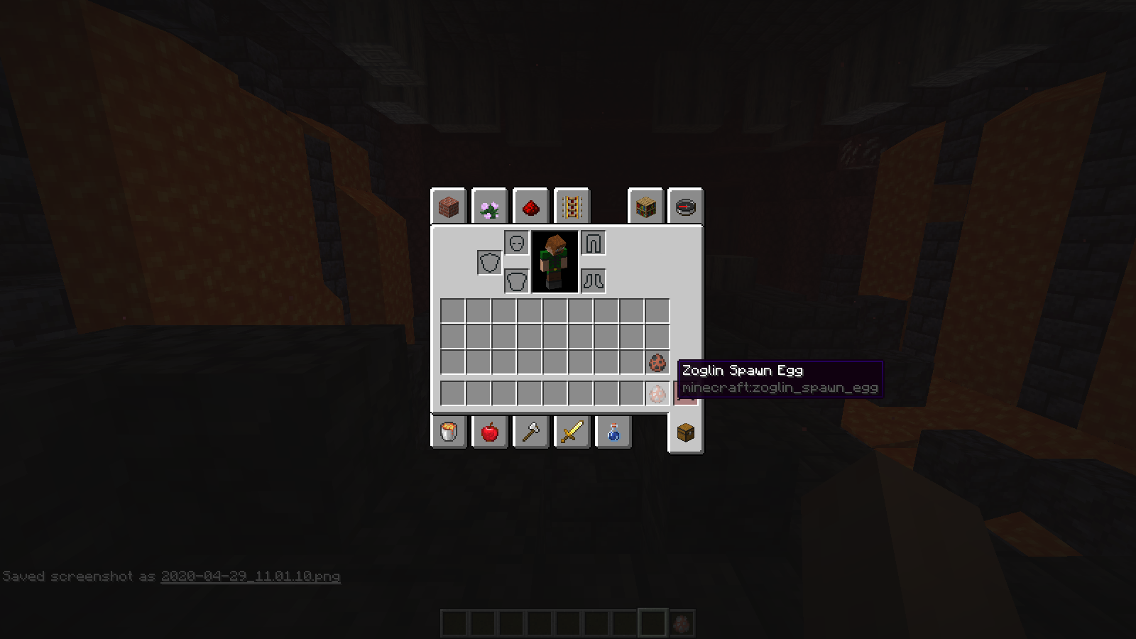 The Zoglin spawn egg is pink, and appears as the Hoglin spawn egg should, while the Hoglin egg has green spots on it and resembles that of a zombie pigman, or what I assume should be a Zoglin egg.
