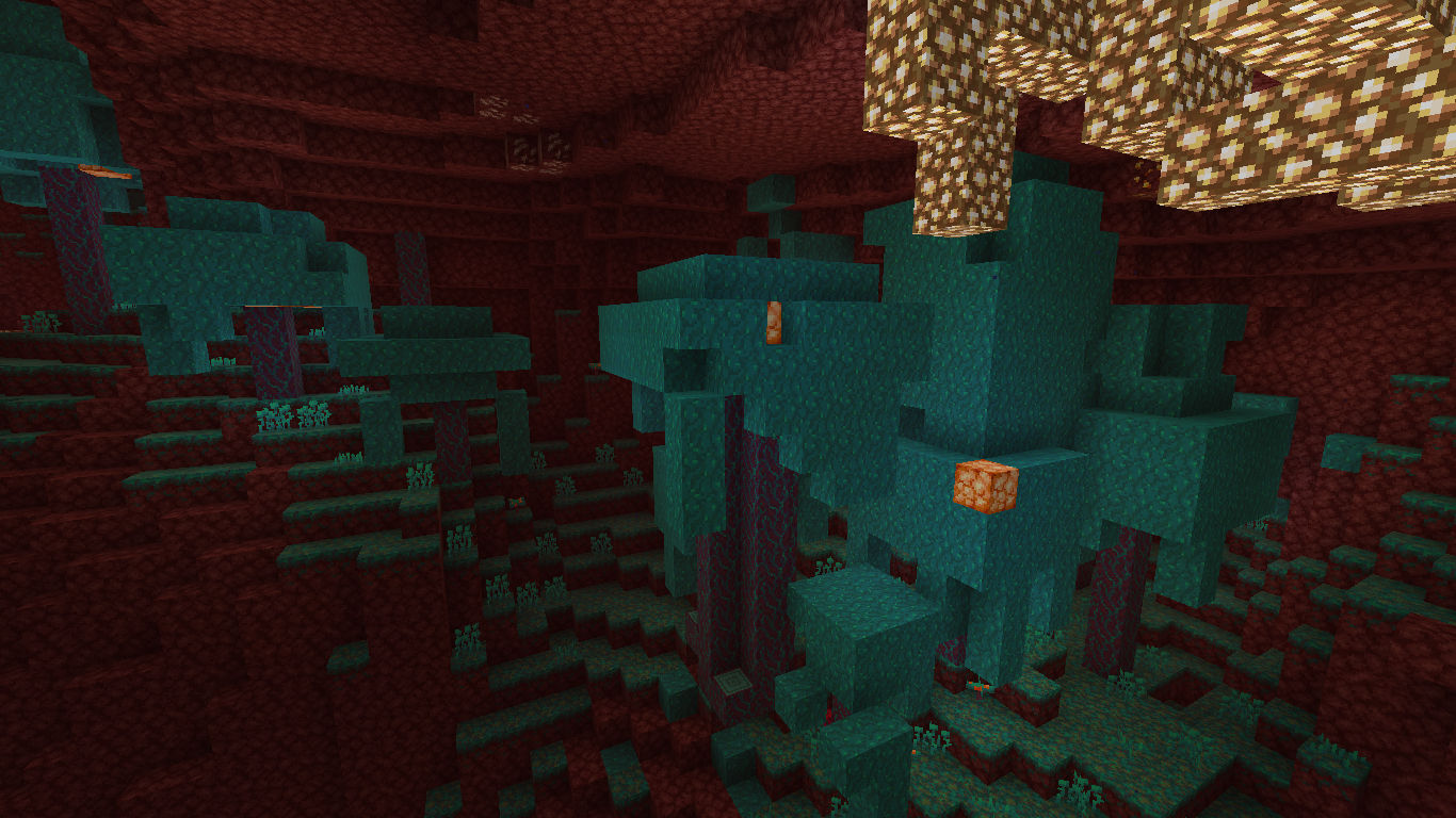 flew through the nether wanted to find a distorted forest and then I see that it is very small and this is the whole forest which is in the screenshot and further a lot of old nether