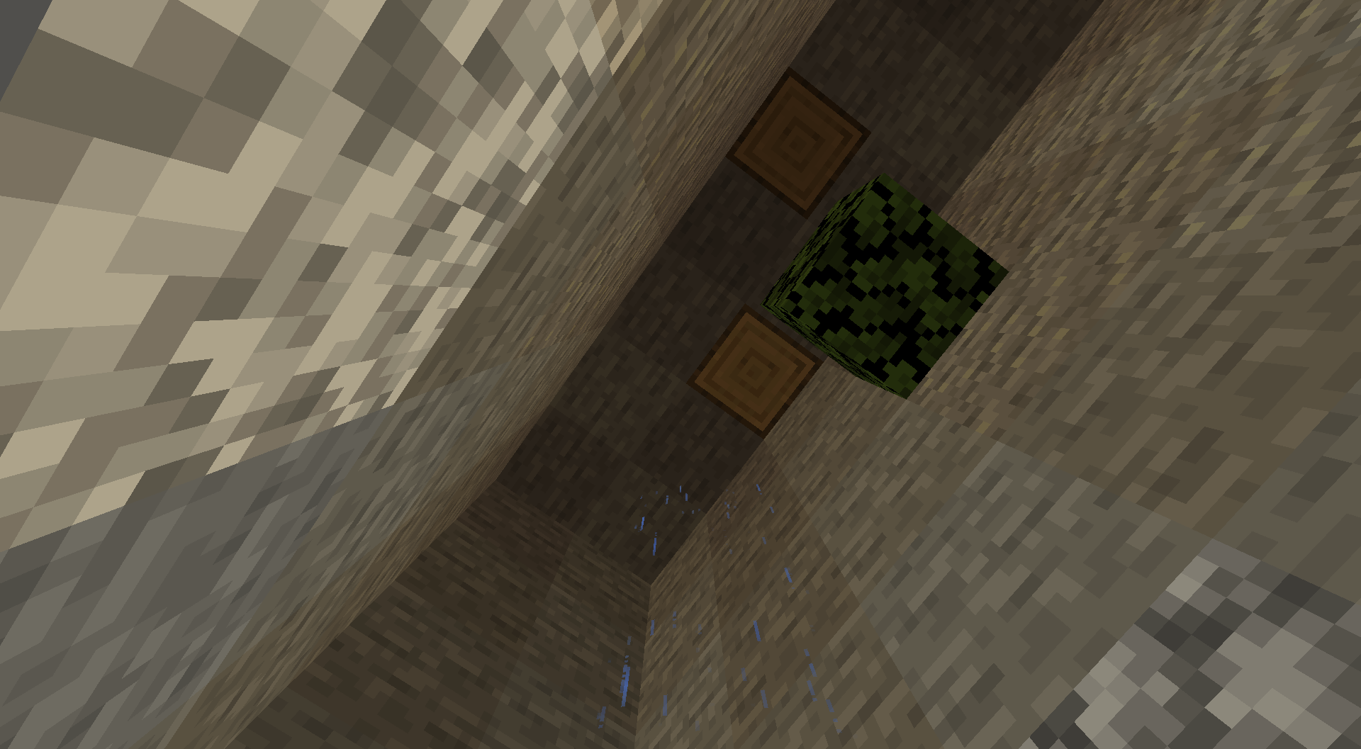 underground tree farm, oak trees grow through stone ceiling, may be connected to rain through stone bug