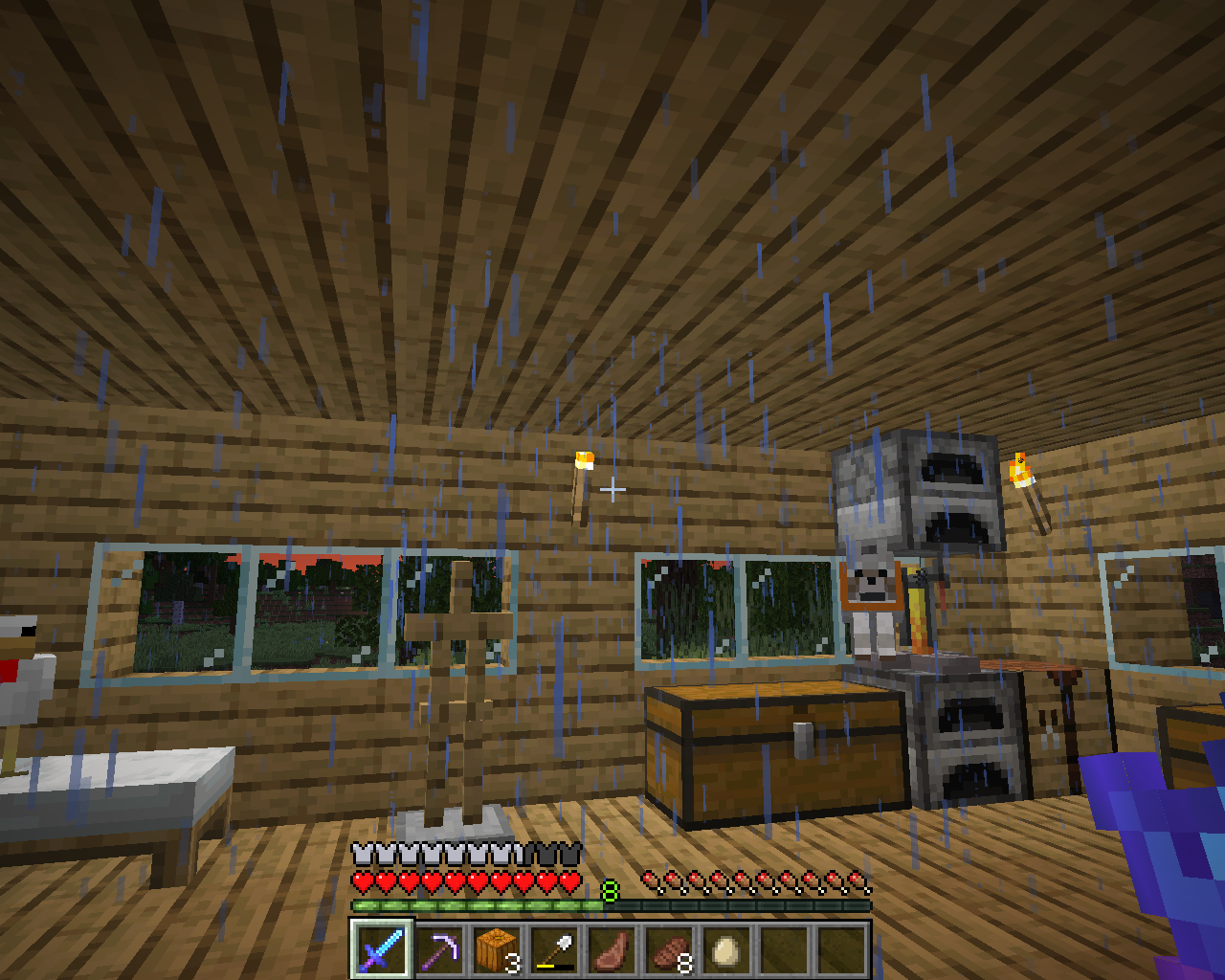 I just saw this glitch today and it basically happens when I'm in my house or some other shelter and what happens is that the rain clips through the roof and ceiling and comes into my house. Doesn't really affect gameplay, but is really annoying.