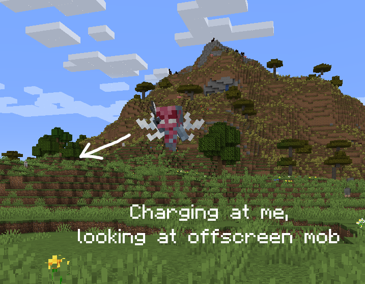 Their head movements in general seem to be iffy too; for example, they can look at other mobs while targeting and charging the player.