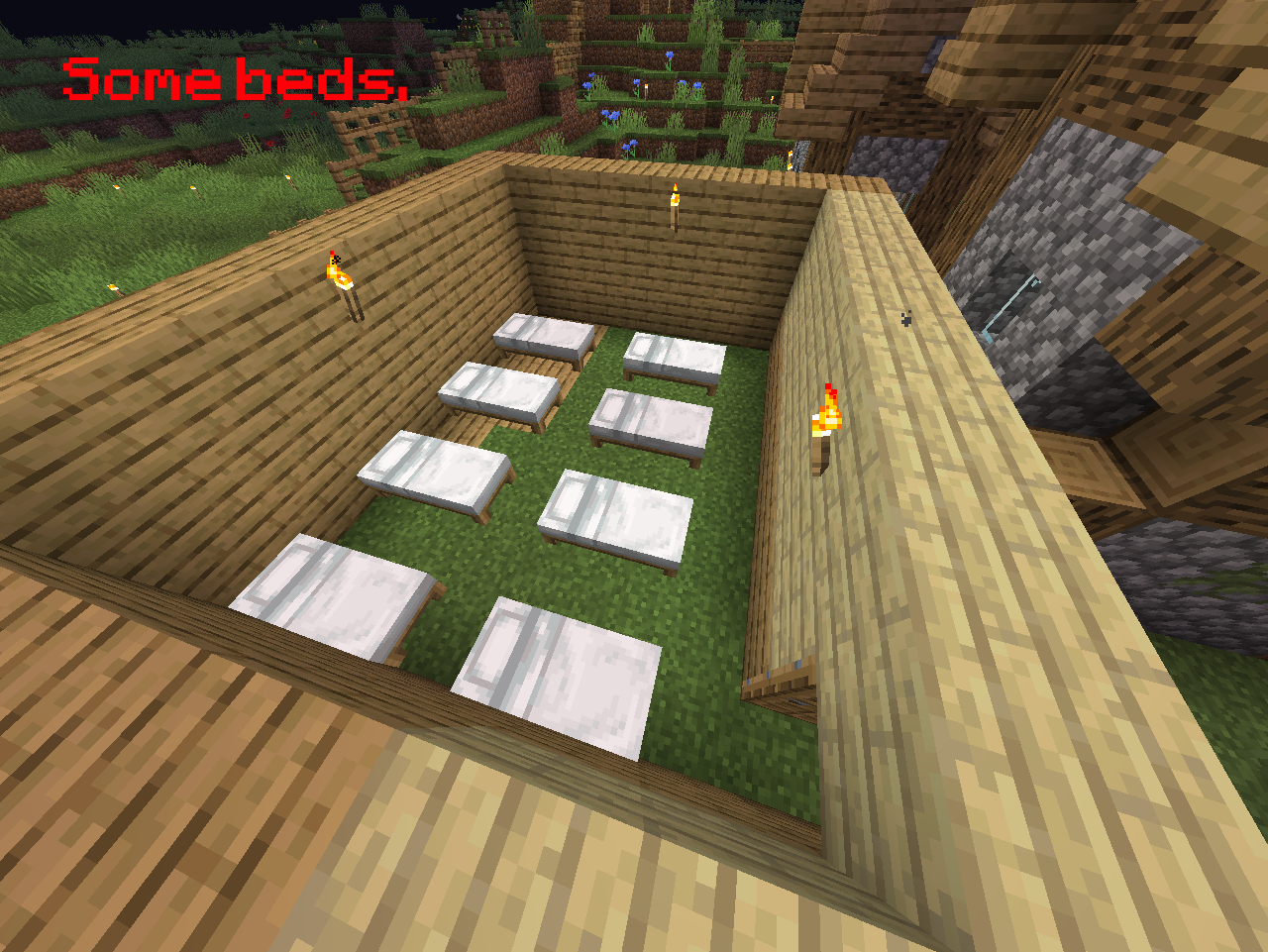 Hello! I didnt show it, but other houses contain naturally generated beds (I didnt touch those), I also added about 5 beds in random houses (and they got occupied. First time I expanded the village I even saw some kids running around), 2 beds in that big cobblestone building. Since then, I tried building 8 more beds and yet it failed. Those 8 beds are not occupied at night as well.