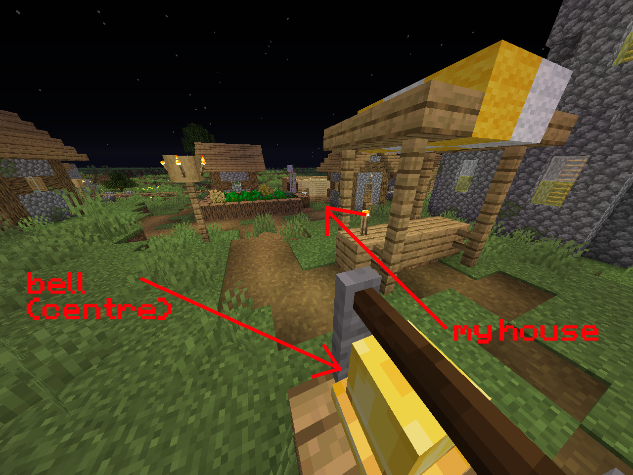 I've built a house with 8 beds, without a roof, surrounded by 4 walls with a door. The floor is solid blocks and the beds are 20-30 blocks away from city center, ~10 blocks away from the nearby valid house. All villagers have professions, iron golems are present. Village is surrounded by a wall, no zombies are around to prevent breeding or something. Angry clouds still appear.