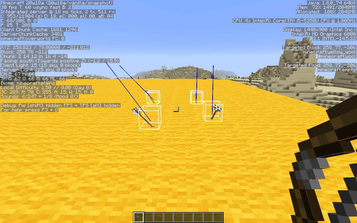The direction arrows are facing does not, in general, align with their visual appearance and their "Motion" nbt tag. The x- and the y-direction components point from tip to tail, while the z-direction component points from the tail to the tip. This affects tp ^ ^ ^1 execution, resulting in an illogical arrow movement, as well as other dependent actions.