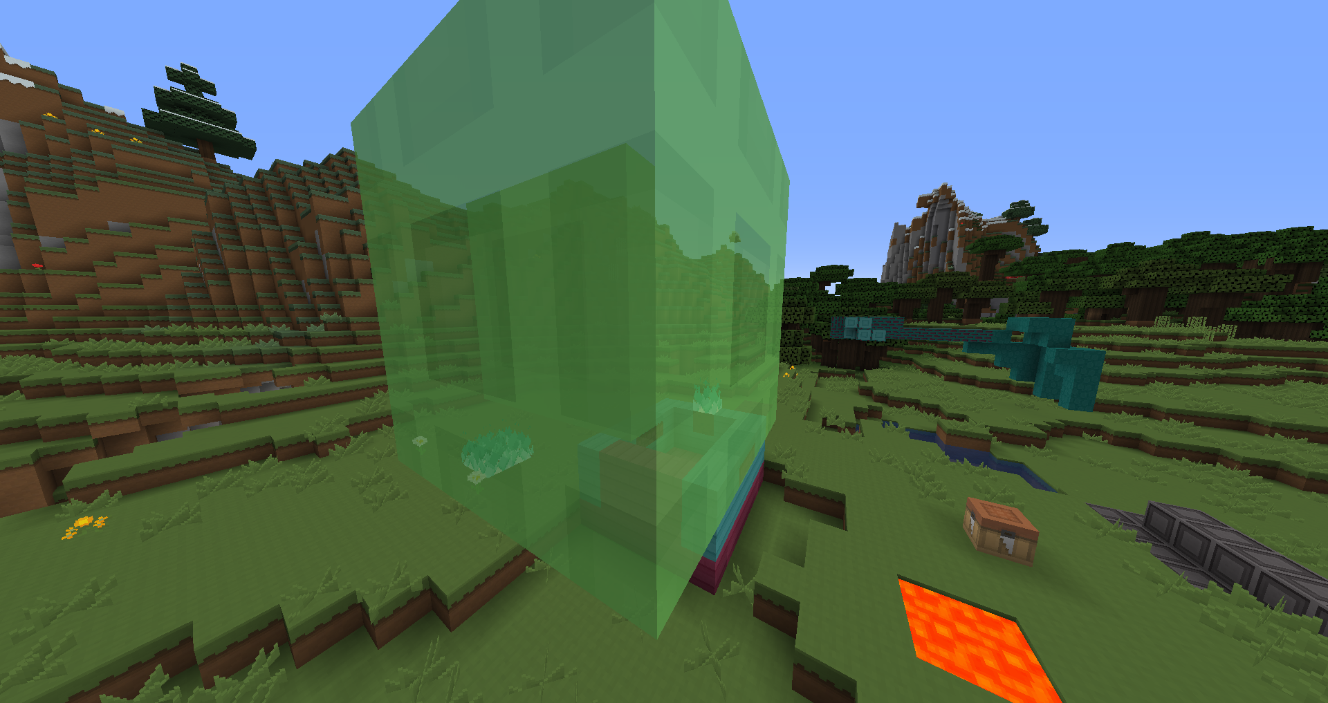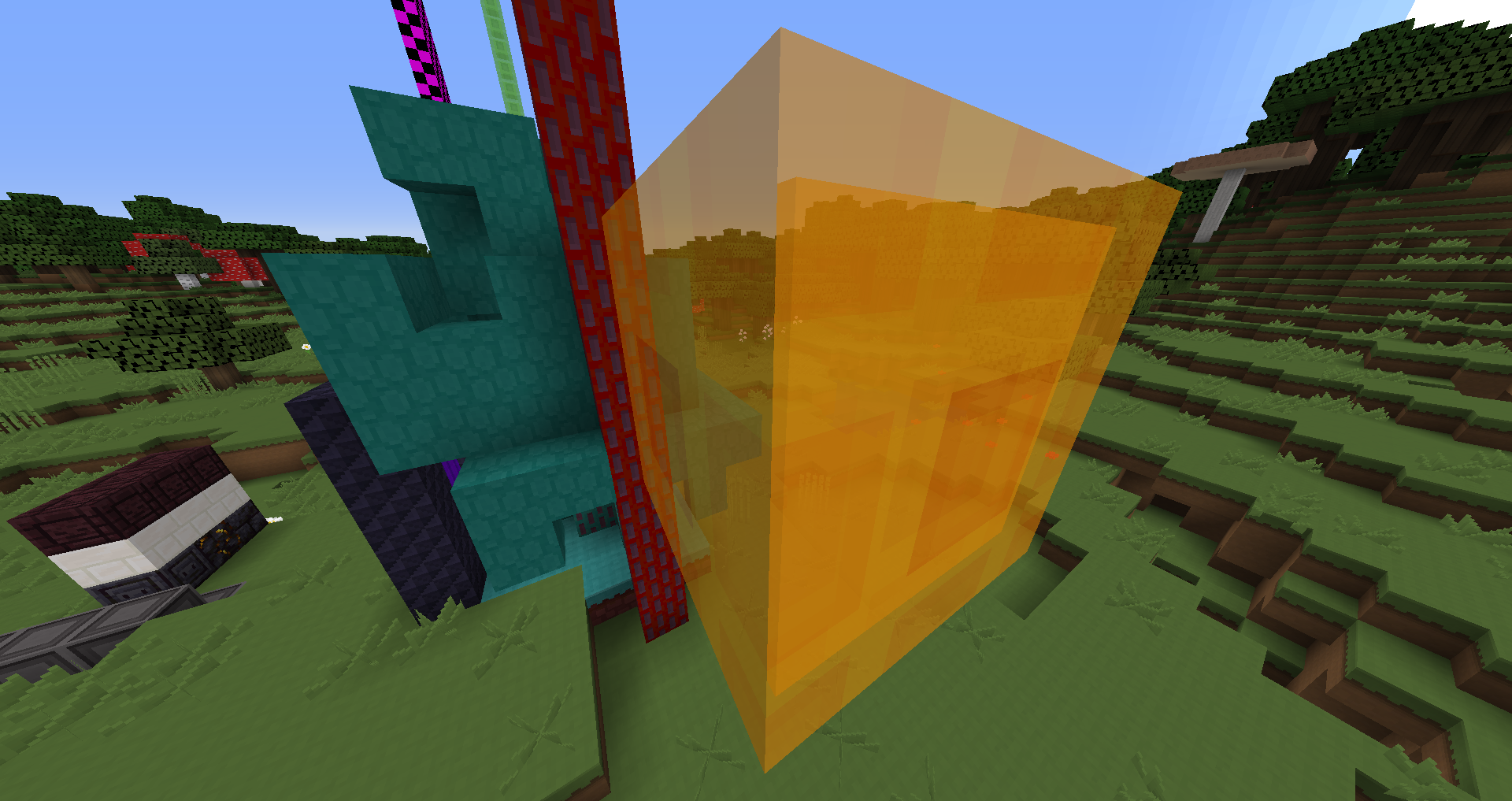 So the following screenshots show how the small "entity❓ " inside the honey block and slime blocks don't always render their faces, causing a visual bug where even at times, the face is rendered on one side of the larger block but not on the other... the pictures explain it better than I can.