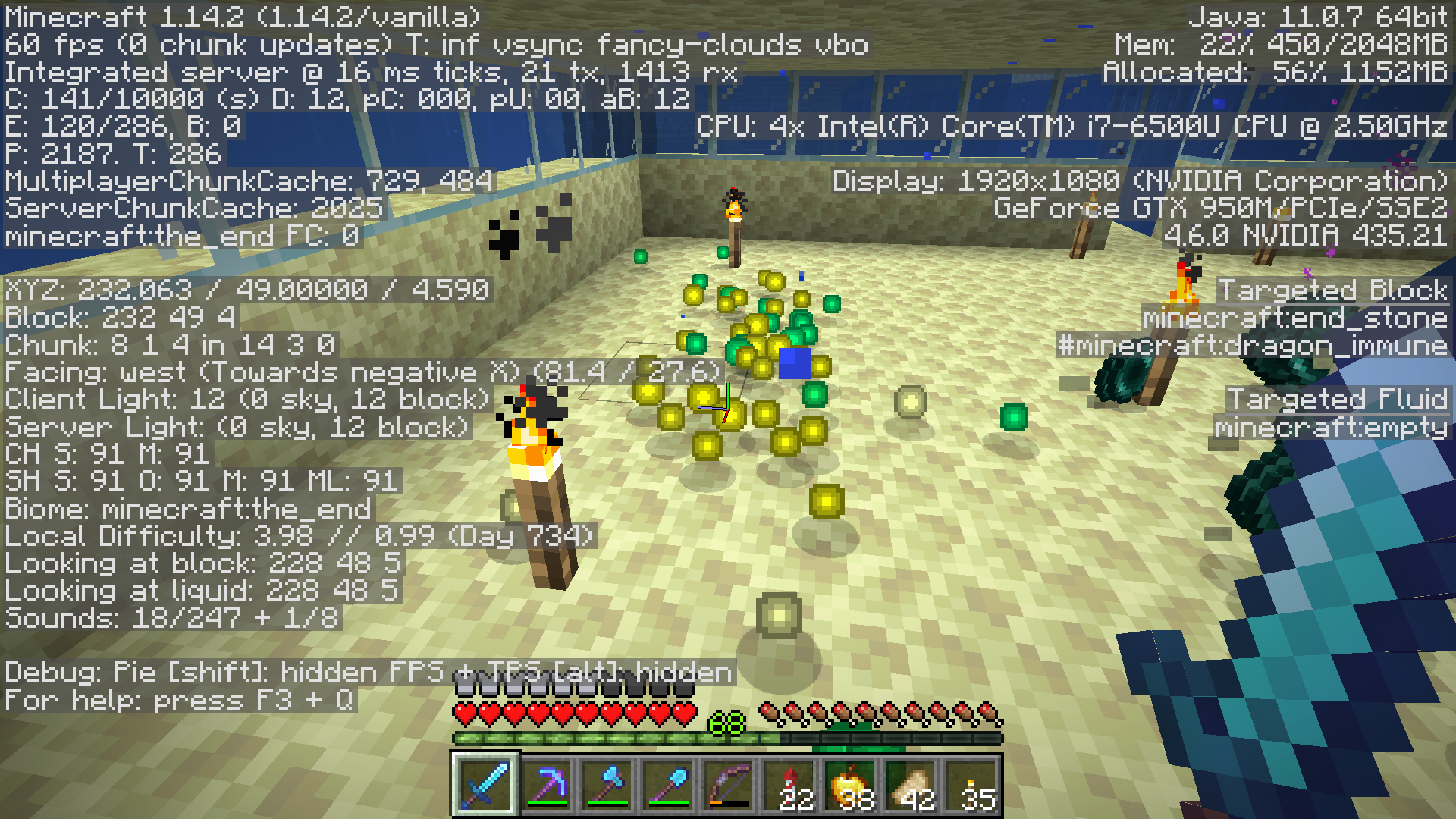 Weirdly enough, experience actually glowed properly in 1.13, but then got dimmer in 1.14.4 and then even dimmer in 1.15.2. Here are screenshots of all instances compared to each other.
