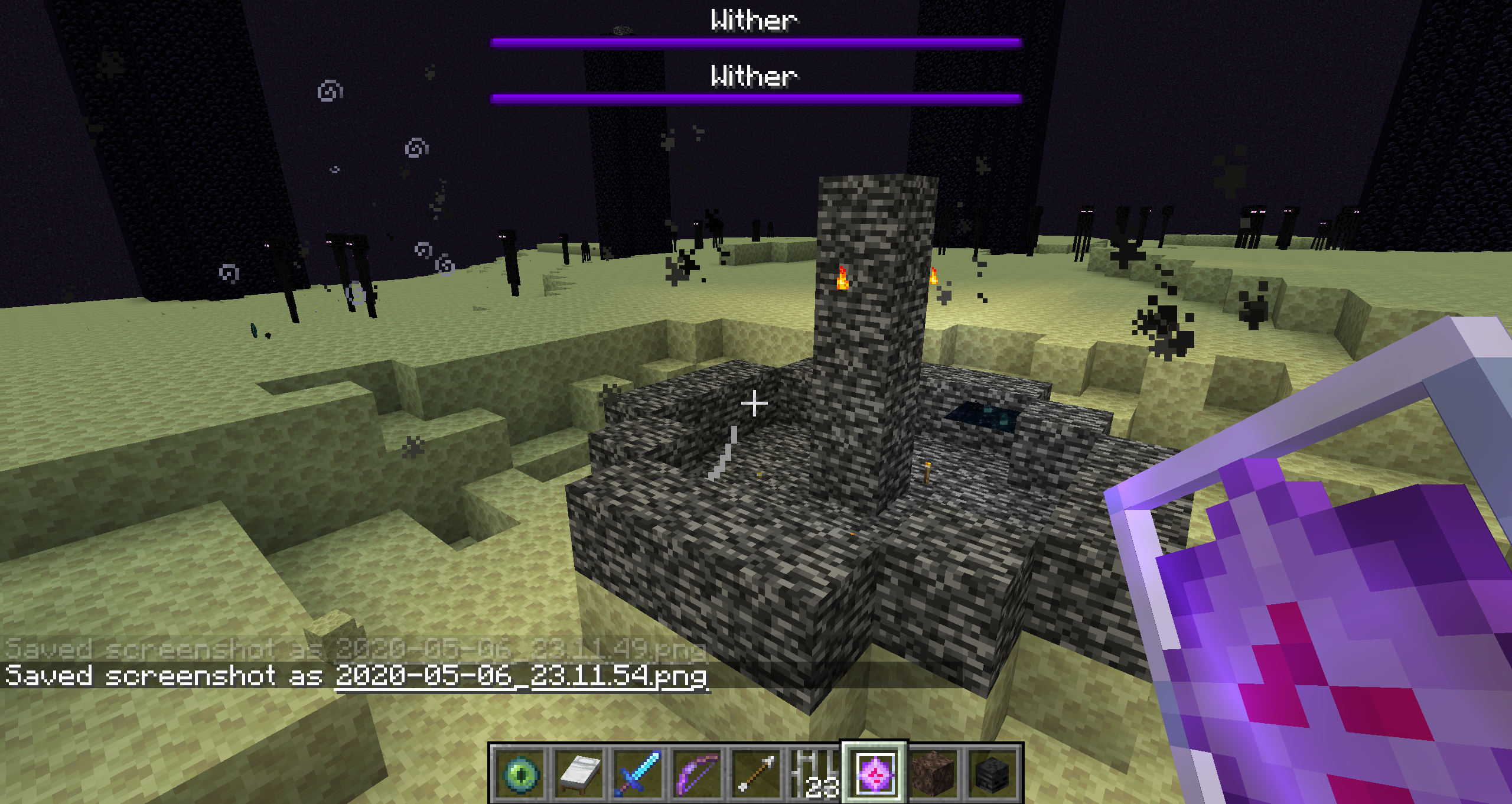 The end portal blocks going back to the Overworld vanish as is intended when placing down the end crystals to respawn the Ender Dragon. However, if the end crystals are blown up by the initial Wither spawning explosion, or a bed, prior to the dragon being successfully spawned in, then the end portal blocks will break.