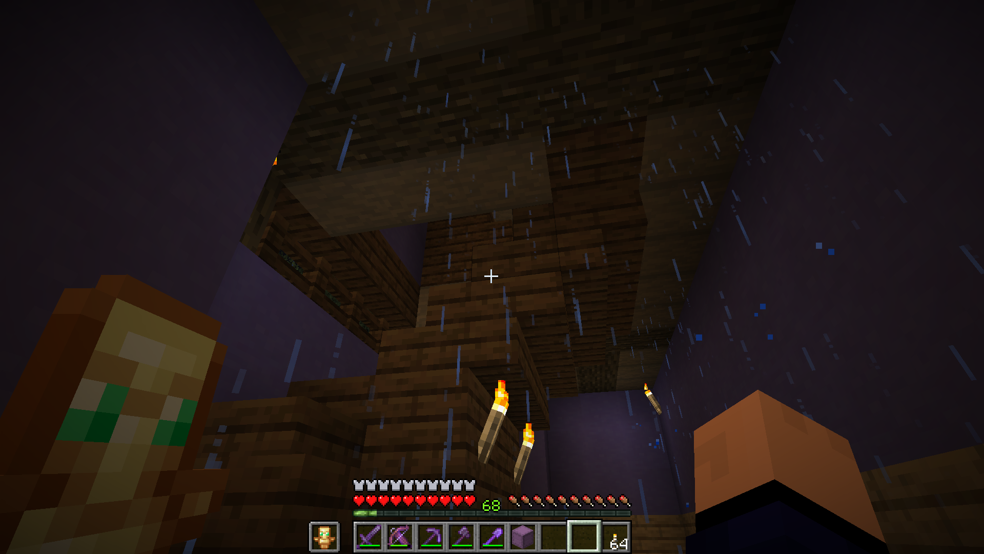 Raindrops pass through blocks and can be seen no matter how far down I go in the world.