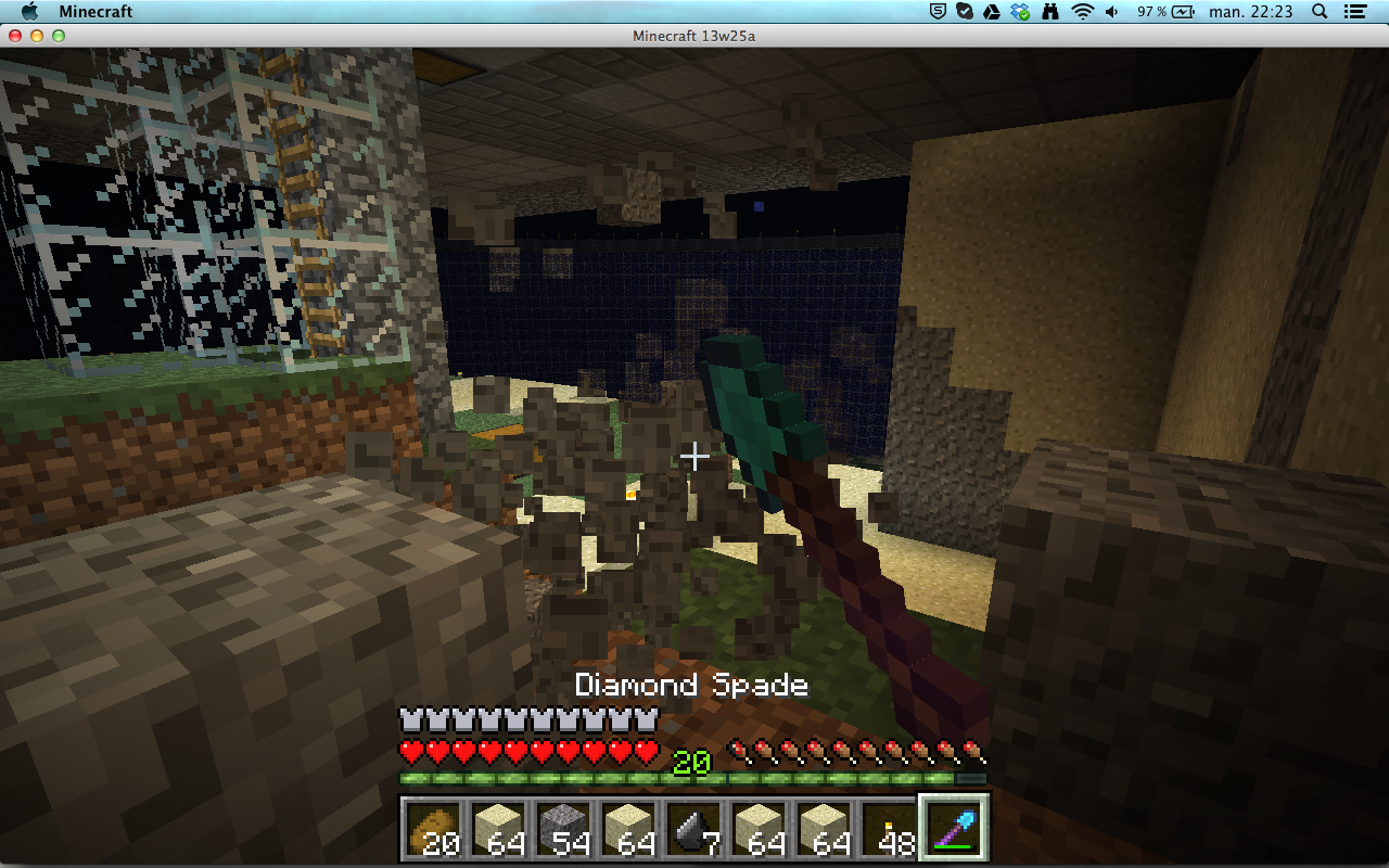 The particles that show up when blocks like sand, dirt, cobblestone and gravel are broken, highlights the glass (with a "stain" of the original particles' colour).